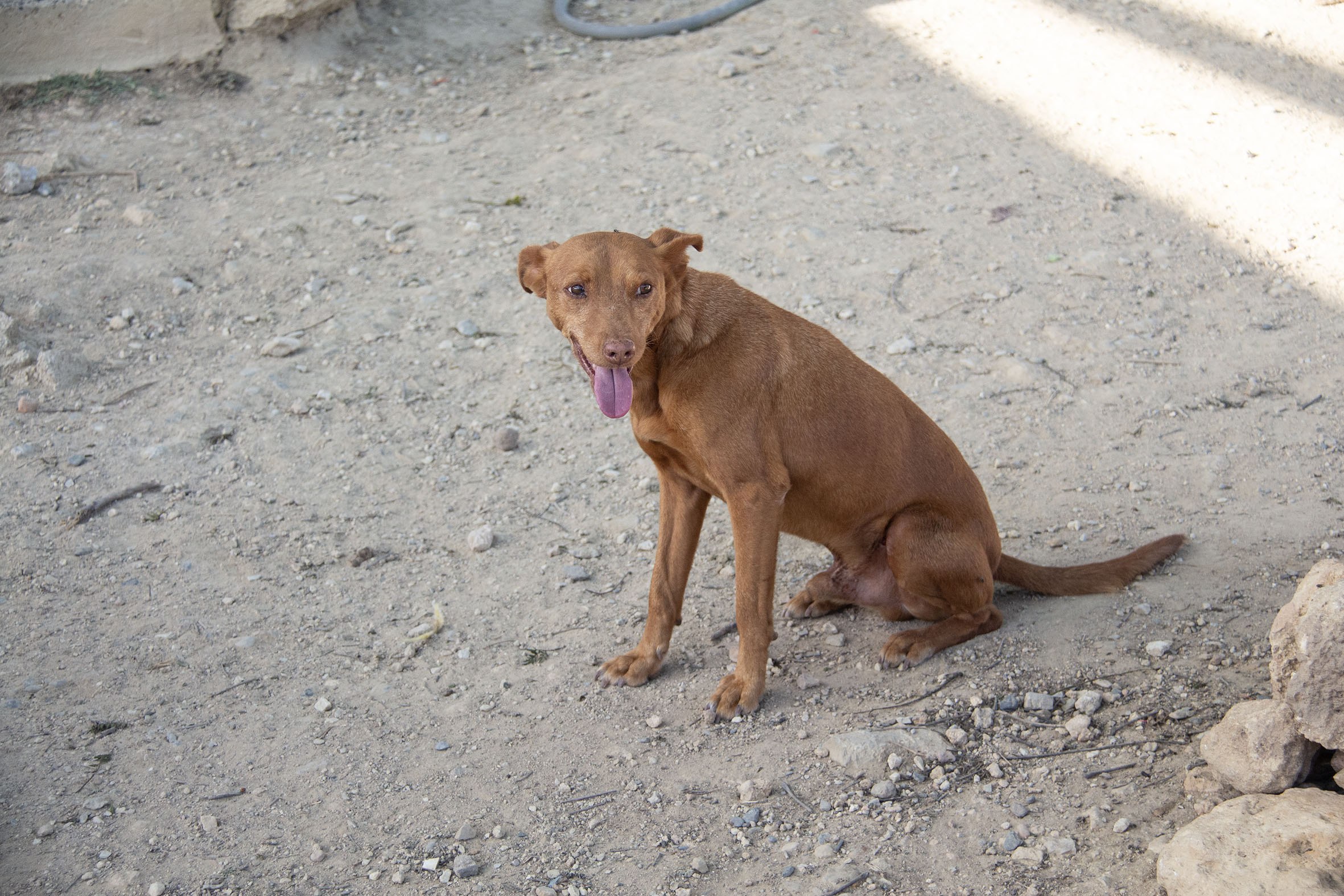 Beacon lebte auf der Straße, als er entdeckt wurde und hatte große Angst vor Menschen und auch vor anderen Hunden. Er wurde längere Zeit gefüttert, bis er gerettet werden konnte. Nun ist Beacon in Melampo untergebracht und in Sicherheit.