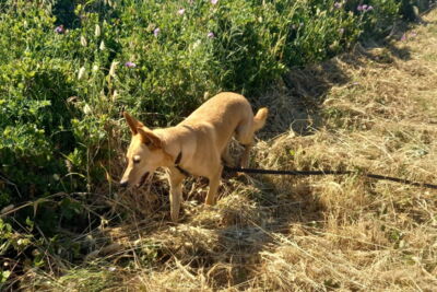 Buddy lebte zusammen mit Bessie (Bessie ist bereits vermittelt) auf einem Feld neben einer Schule. Sie waren auf sich allein gestellt. Über einen längeren Zeitraum wurden sie von den Lehrern der Schule gefüttert. Irgendwann holten sich diese Hilfe bei den Helfern von Melampo. So wurden die beiden Hunde nach Melampo gebracht, wo sich gut um sie gekümmert wird.