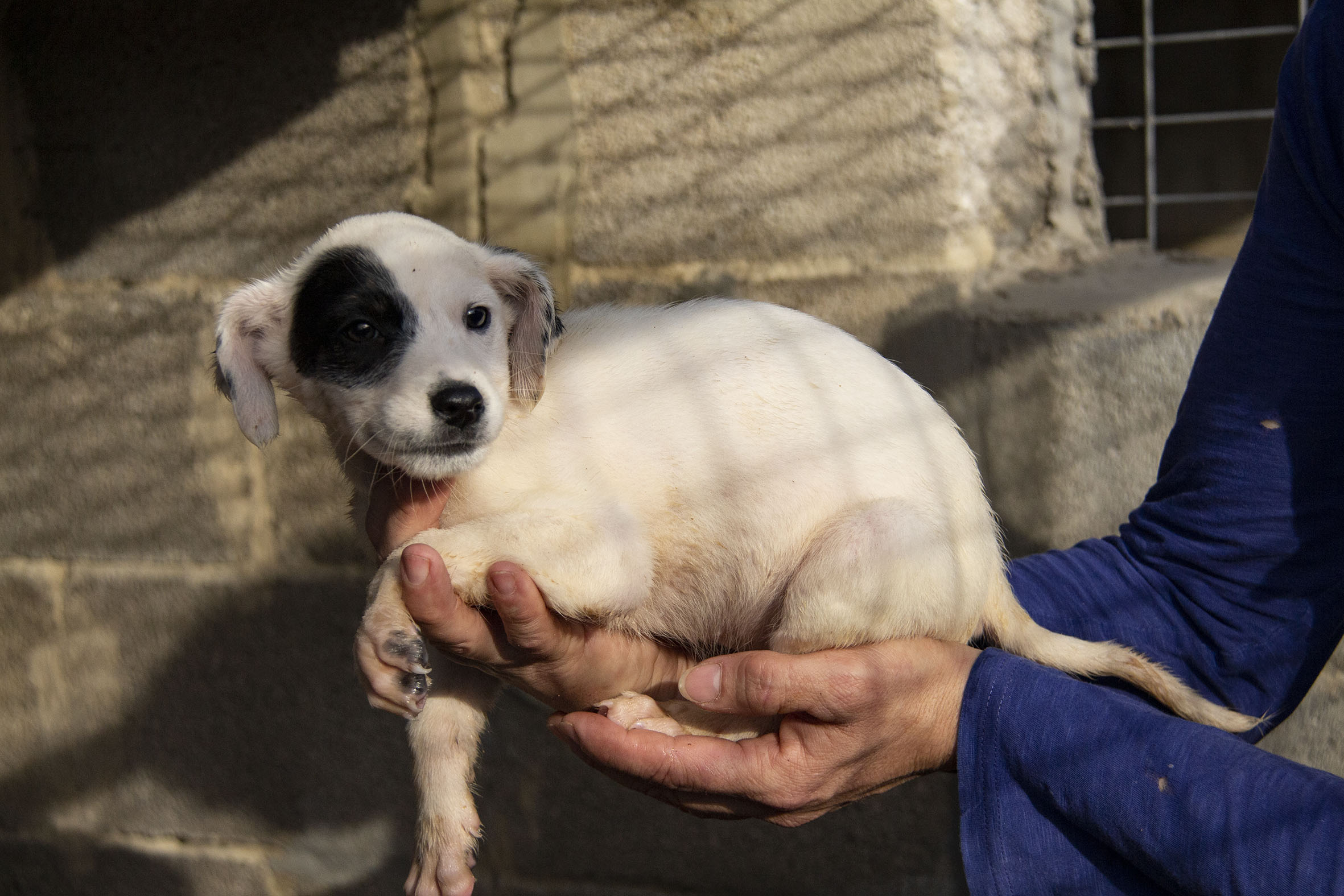 Die Mutterhündin Paloma wurde Rande einer Landstrasse gefunden. Ein Besitzer war weit und breit nicht in Sicht. Zum Glück konnten Helfer sie aus dieser gefährlichen Situation retten. Paloma war zu diesem Zeitpunkt auch noch hochträchtig. Paloma hatte zwar einen Chip und der Besitzer konnte auch kontaktiert werden. Er hatte allerdings kein Interesse daran, die Hündin zurückzunehmen (zu Palomas Glück).