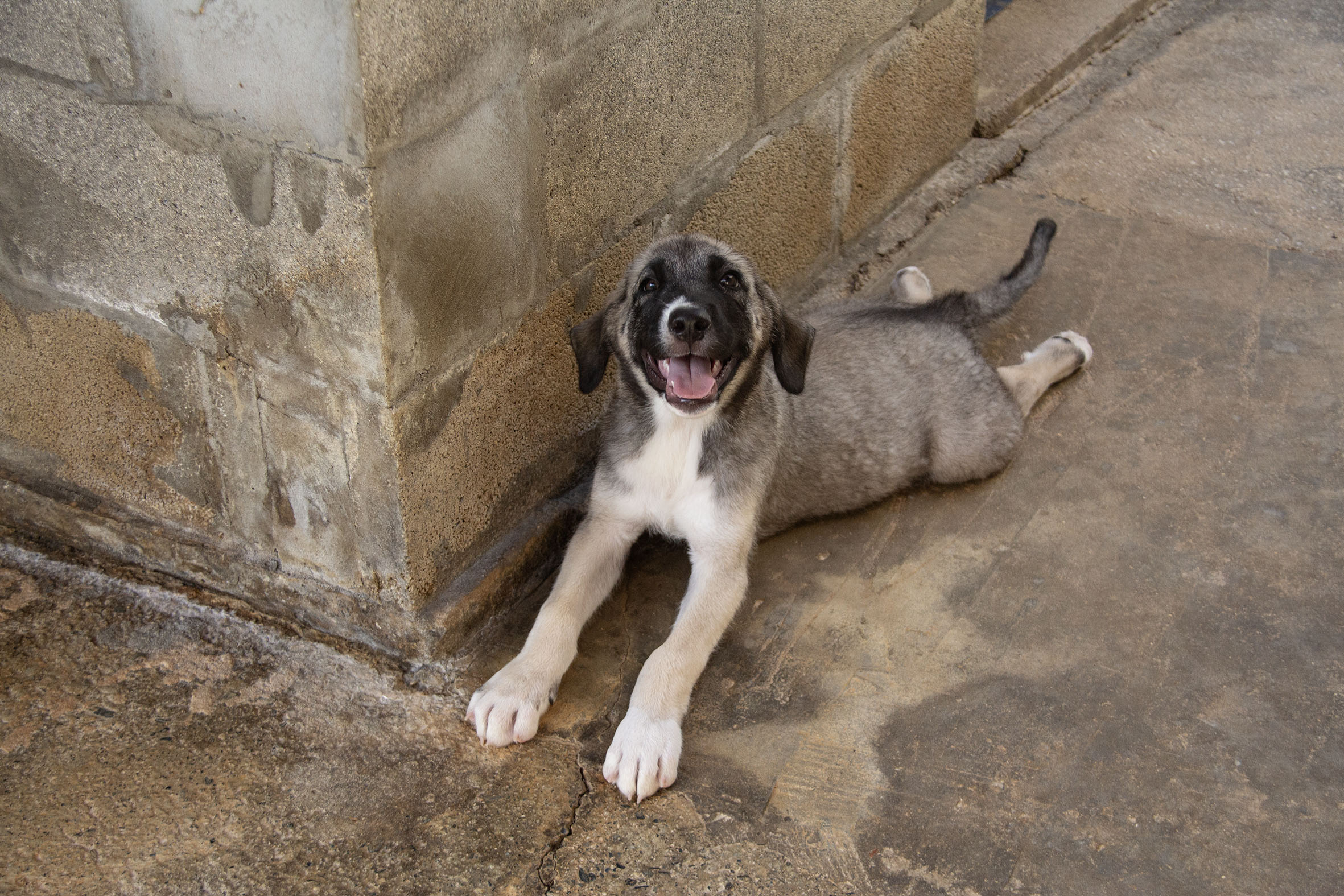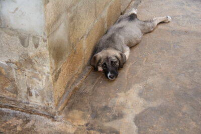 4 Welpen wurden über das Eingangstor von Melampo geworfen. Es handelt sich wohl um einen unerwünschten Wurf, weil ihre Mutter nicht sterilisiert wurde. Zum Glück sind sie in Melampo gelandet und nicht auf der Strasse..