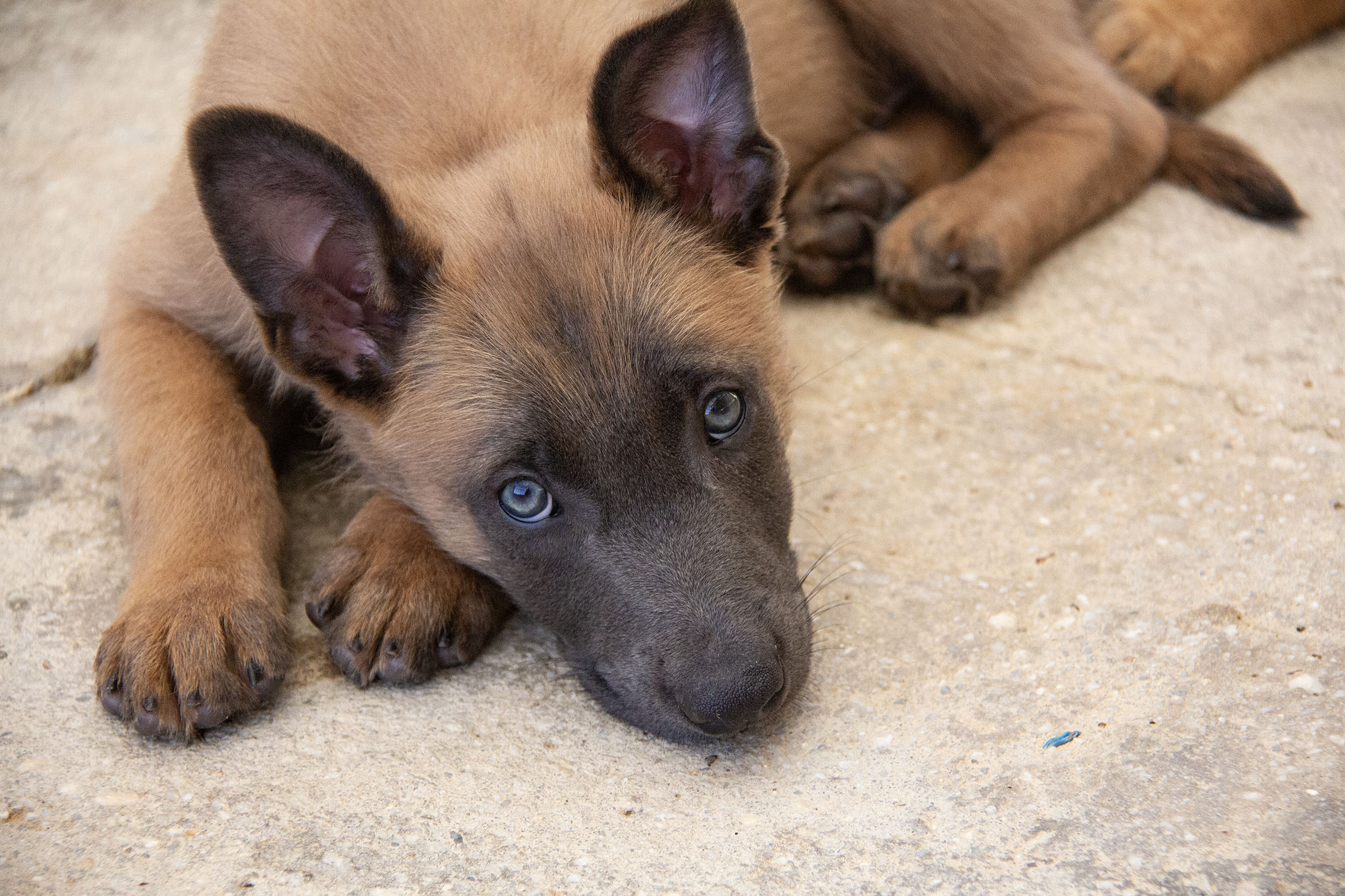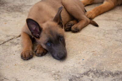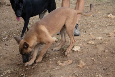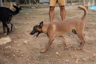 Bei den Welpen handelt es sich um Malinois-Mixe. Der Vater ist uns unbekannt. Darum ist eine genaue Endgrösse schwierig zu schätzen. Sie werden aber sicher noch deutlich wachsen und an Gewicht zulegen. Momentan sind sie noch zu jung für eine Kastaration/Sterilisation. Dies muss in der Schweiz nachgeholt werden, sobald der richtige Zeitpunkt dafür gekommen ist.