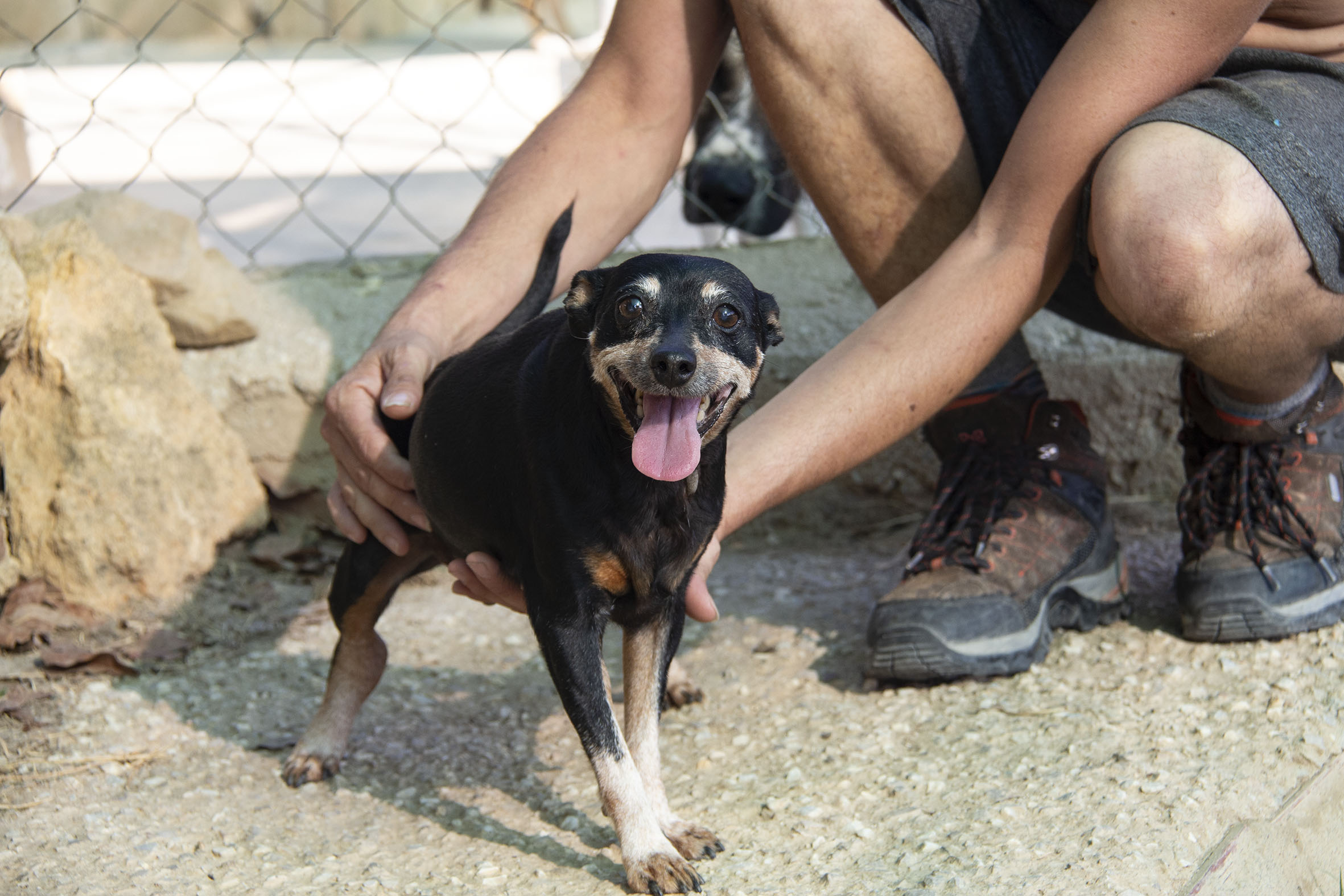 Die drei Golden Girls sind sehr verschmust gegenüber den freiwilligen Helfern und suchen Aufmerksamkeit und Nähe. Sie lieben die menschliche Zuneigung und Umarmungen. Nur dann fühlen sie sich glücklich und sicher. Sie sind gesellig und gut verträglich mit den anderen Hunden im Camp und gehen in den Auslauf mit den kleineren Hunden. Da sie so klein sind, sind sie verwundbarer um die anderen Hunde. Wir suchen deshalb schnellstmöglich ein Zuhause oder Pflegestelle für diese drei Süssen.