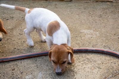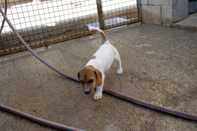 Wir fanden heraus, dass die Mutterhündin Jara gechippt war. Da der Besitzer nicht kontaktiert werden konnte und die Hündin auch nicht als vermisst gemeldet war, informierten wir die Polizei, ohne etwas von den Welpen zu sagen. Wir hoffen, dass wir zu einer Verzichtserklärung kommen, Jara nicht zurückgeben müssen und auch sie bald publizieren dürfen. Sie ist als „Schweisshund“ eingetragen. Wir denken aber, dass es sich um einen Beagle-/Dackelmix handelt. Sie ist etwa 25cm gross und und 10kg schwer.