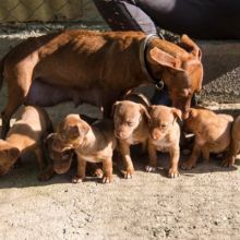 Lucie, die Mutter der Welpen wurde hochträchtig auf der Strasse gefunden. Sie wurde von Helfern zum Tierarzt gebracht, damit sie ihre Welpen nicht auf der Strasse gebären musste. Einige wenige Tage später kamen die sieben Geschwister dann gesund auf die Welt. Der Geburtstag war der 14.11.2015.