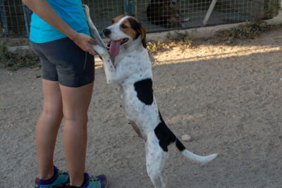 Maya war für die Jagd bestimmt, doch es zeigt sich, dass die Hündin zu wenig Jagdtrieb hatte, das machte sie ungeeignet für die Zucht. Aus diesen Gründen wollte der ehemalige Besitzer sie nicht mehr. Melampo war die beste Lösung, die der Besitzer akzeptiert hatte.