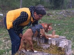 Als sie in Melampo ankam, war sie Menschen gegenüber sehr misstrauisch und ängstlich. Wir gehen davon aus, dass sie von ihrem Vorbesitzer nicht gut behandelt wurde. Die anderen Hunde in ihrem Zwinger und in der grossen Gruppe haben ihr sehr geholfen, wieder Vertrauen in die Menschen zu fassen.