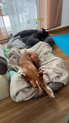 Zauberhafte Podenco-Mix-Hündin sucht einfühlsames Zuhause – am liebsten gemeinsam mit ihrem besten Freund Toni Unsere sensible Podenco-Mix-Dame ist eine echte Naturliebhaberin. Sie liebt lange, ruhige Spaziergänge über Felder und durch Wälder, wo sie sich frei und sicher fühlt. In der Natur kann sie mit entsprechendem Vertrauen auch ohne Leine laufen – in der Stadt hingegen ist ihr das zu viel Trubel, da bleibt sie lieber sicher an der Leine. Sie ist sehr sozial, liebt andere Hunde – und ganz besonders ihren treuen Gefährten Toni, mit dem sie durch dick und dünn geht. Die beiden sind ein eingespieltes Team, geben sich gegenseitig Halt und Sicherheit. Es wäre ein großes Glück, wenn Toni mitvermittelt werden könnte, denn alleine fühlt sie sich schnell unsicher. Ist Toni dabei, kann sie entspannt alleine bleiben. Unsere Hündin ist sensibel und in manchen Situationen ängstlich- zum Beispiel bei starkem Regen!