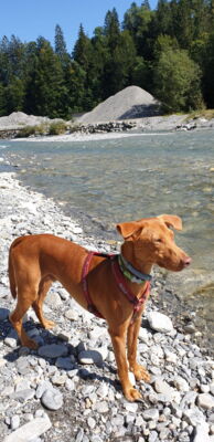 Oasis liebt Bergwanderungen und Waldspaziergänge mit all den interessanten Düften. Er läuft bei uns ohne Leine, sein Rückruf funktioniert sehr gut. Oasis liebt es mit Katzen zu spielen, überhaupt will er in allen Situationen gefallen und ist einfach eine Frohnatur. Das Alleinsein muss mit ihm noch geübt werden.