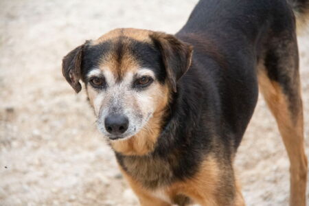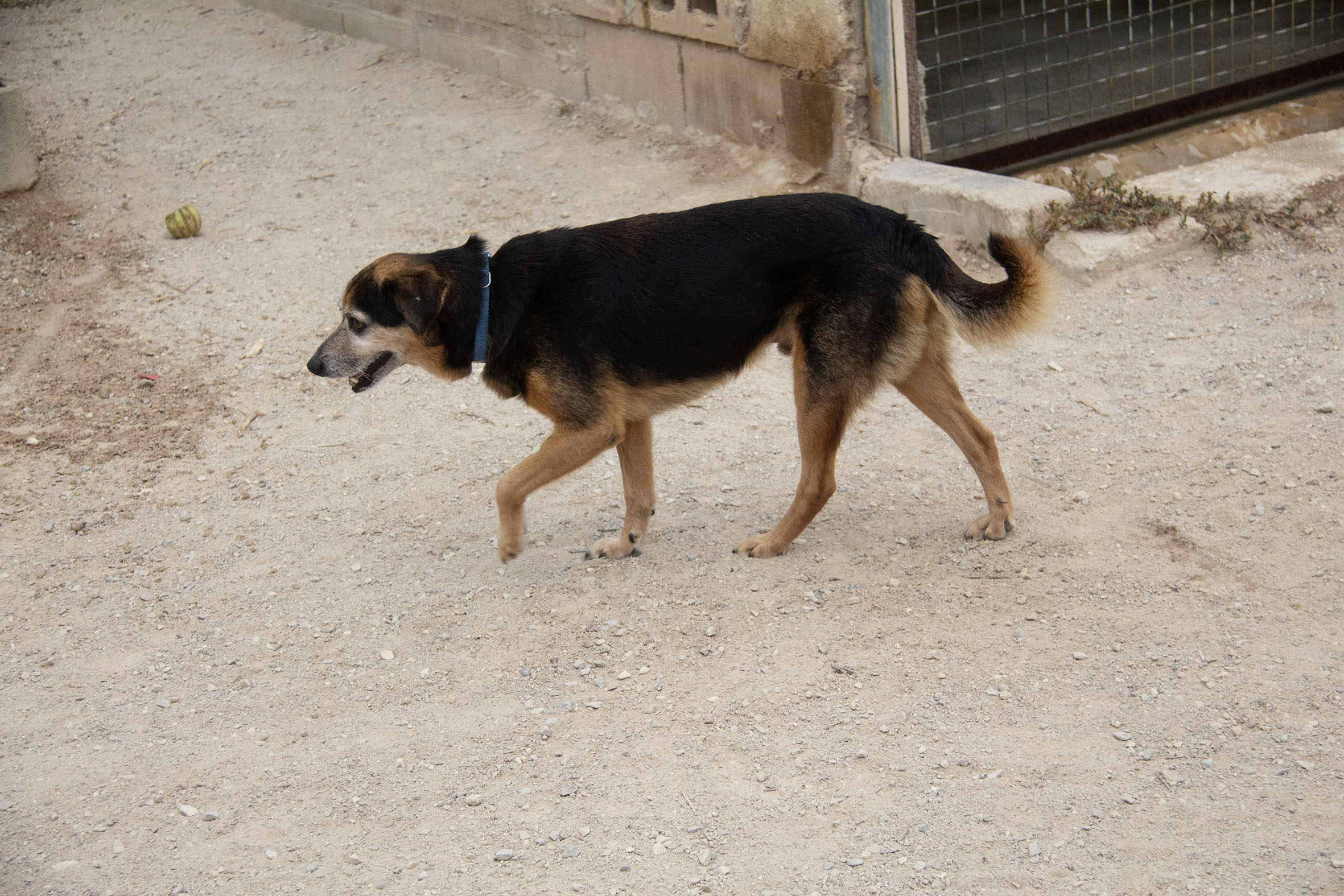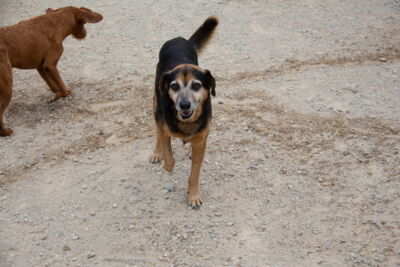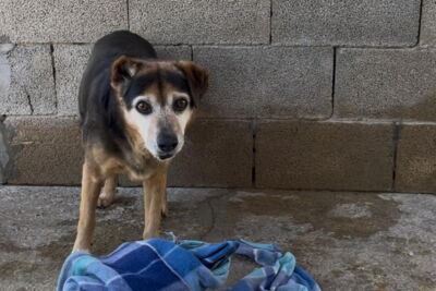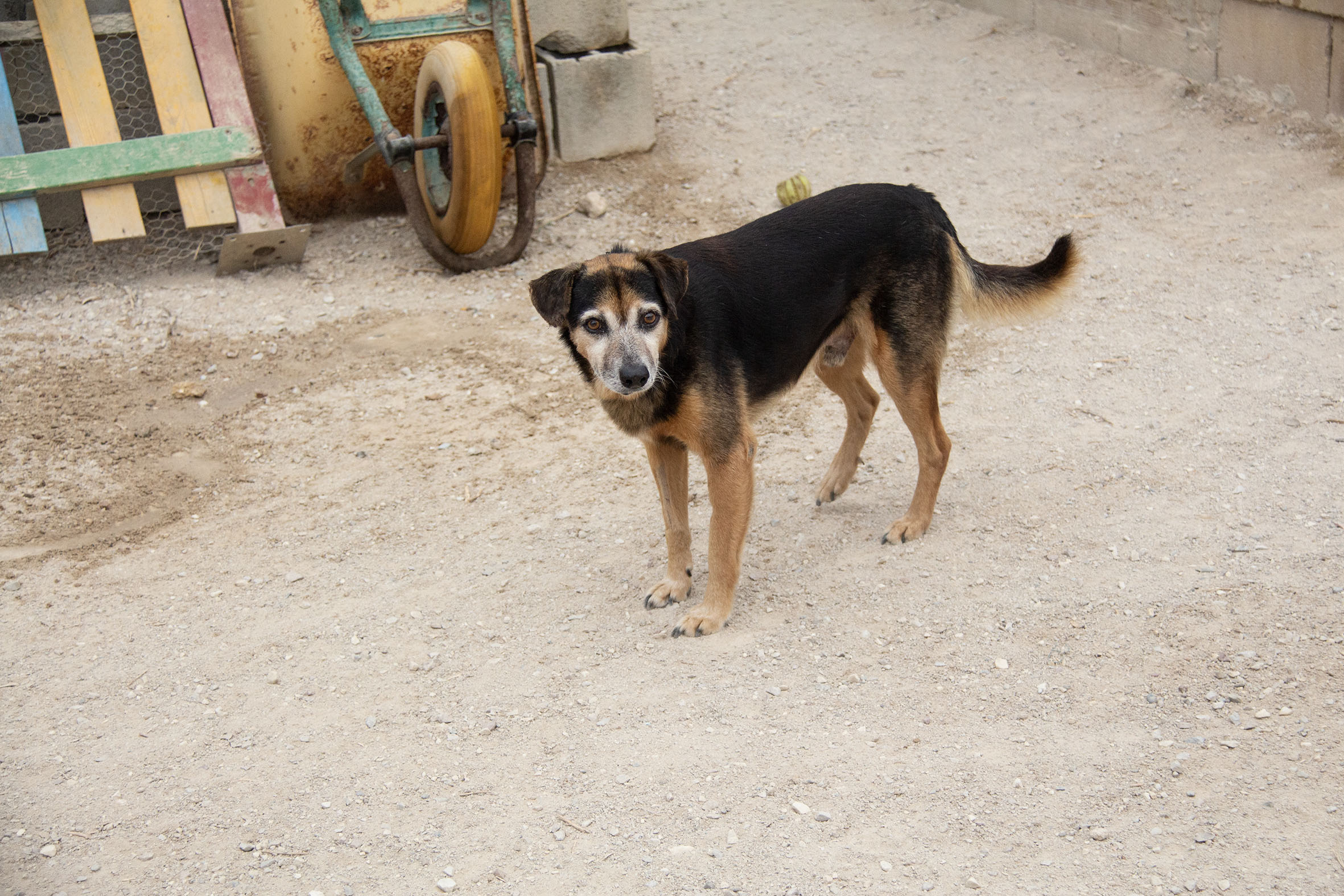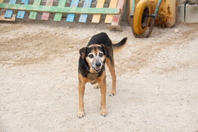 Poppet lebte zusammen mit anderen Hunden vor einem Supermarkt. Die Nachbarn haben die Hunde gefüttert. Die anderen Hunde wurden bereits gerettet, bis auch Poppet gerettet werden konnten und ins Melampo gebracht wurde.