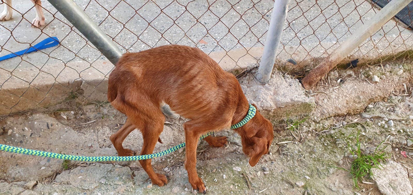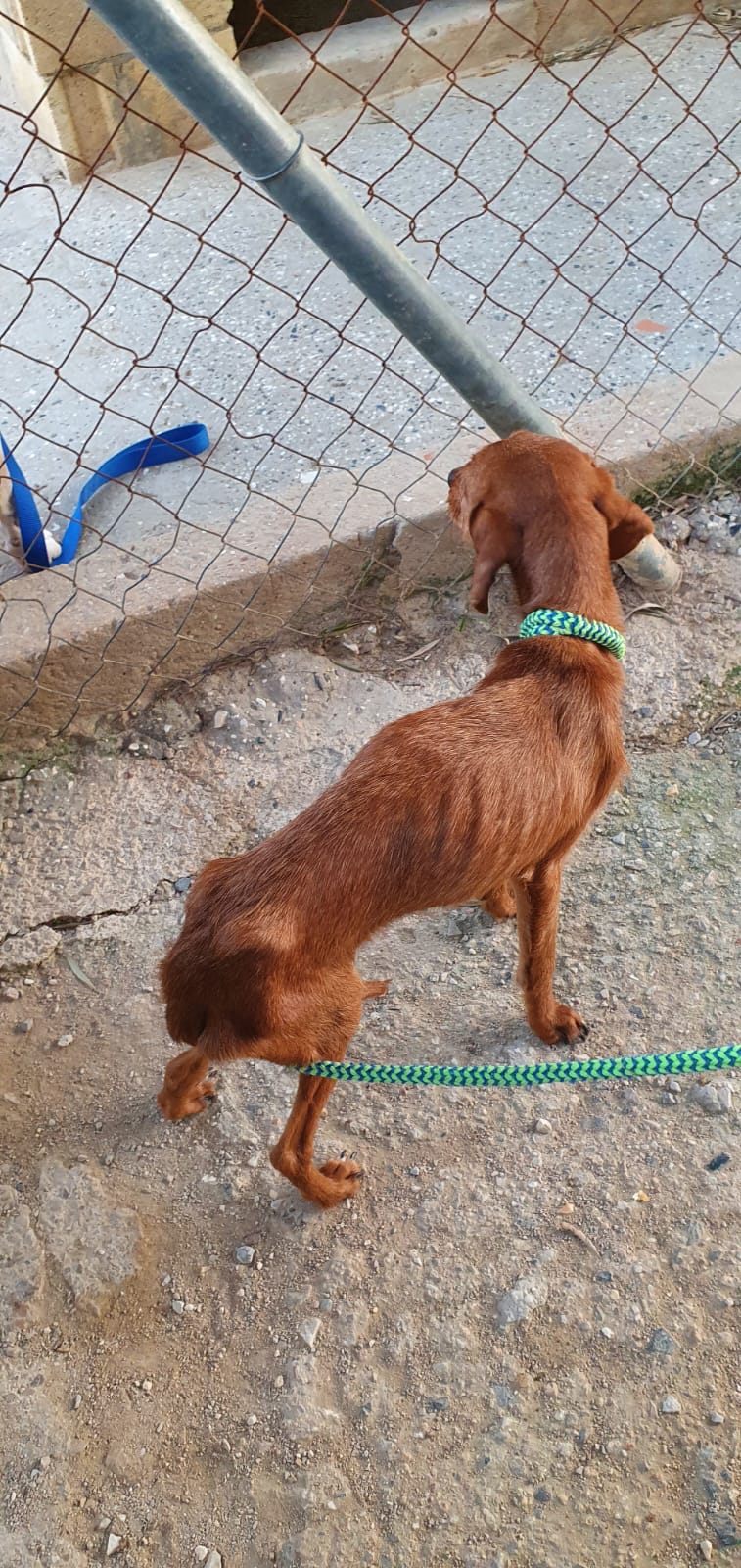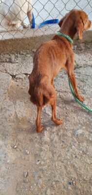 Rado wurde zusammen mit weiteren Hunden (Candela, Ceniza, Ascua, Olmo und Gordo) von einem trostlosen Ort gerettet, wo sie eingesperrt, ohne Wasser und Futter und inmitten ihrer eigenen Hinterlassenschaften leben mussten. Rados und Olmos Zustand waren erschreckend (wir haben einige Fotos beigefügt). Er war so dünn und dehydriert, dass es lebensgefährlich war. Im Melampo geht es ihm schon viel besser und er macht grosse Fortschritte. Die Mittelmeerkrankheiten wurden vom Tierarzt zum Glück negativ getestet.