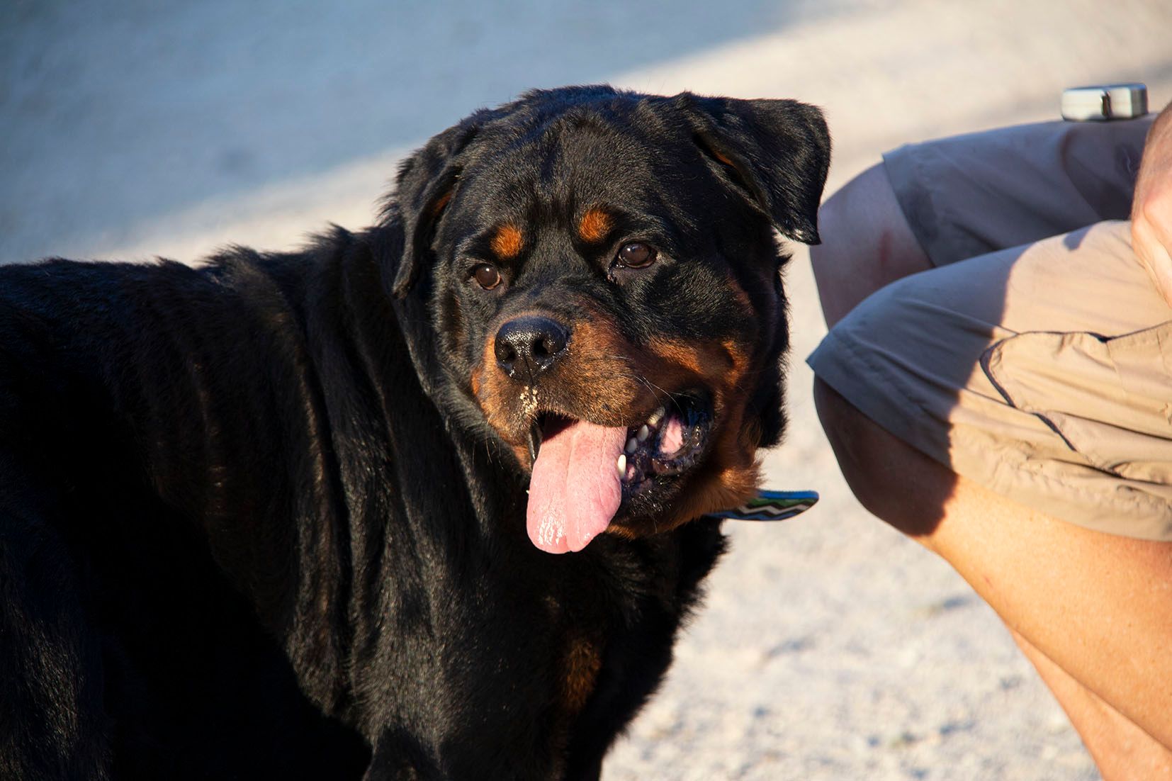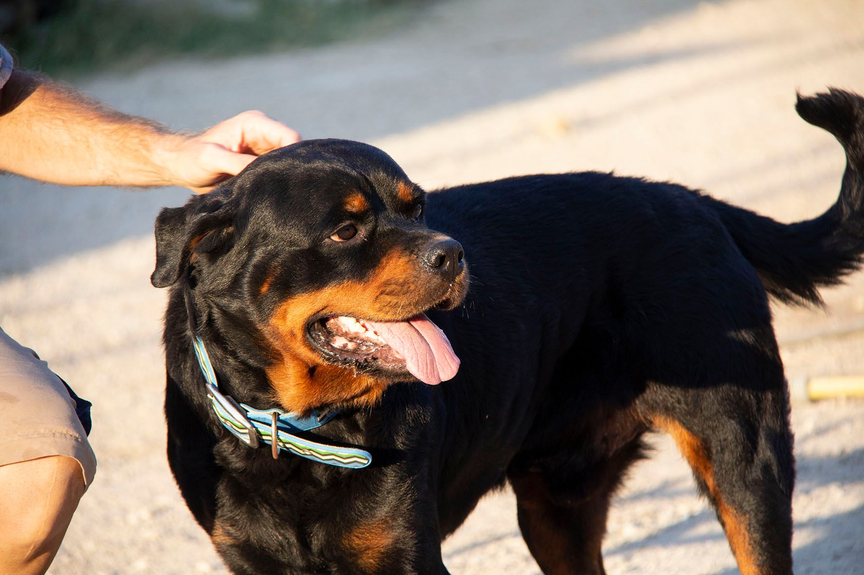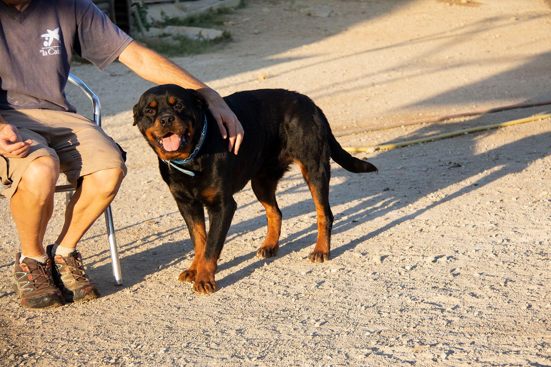 Rover ist im Umgang mit den Helfern sehr liebevoll. Er liebt die Aufmerksamkeit der Helfer und lässt sich gerne streicheln. Nach einiger Zeit in Melampo wurde der schöne Rover in Spanien adoptiert. Er hat dort zusammen mit anderen Hündinnen und Rüden gelebt. Mit diesen Hunden verstand er sich gut. Doch die Familie besass bereits einen weiteren Rottweiler. Es handelte sich um einen eher dominanten Rüden. Mit diesem Hund kam Rover leider nicht klar. Die Familie entschied, dass sie Rover nicht dauerhaft behalten können. Und darum wartet er nun wieder auf seine zweite Chance auf ein liebevolles Zuhause..