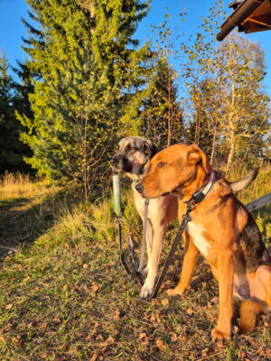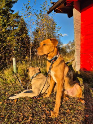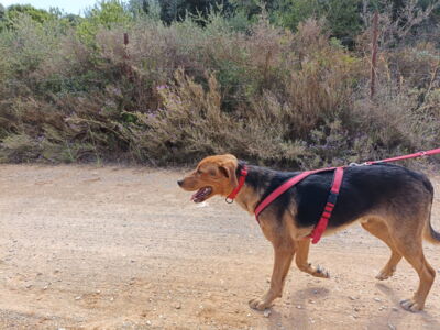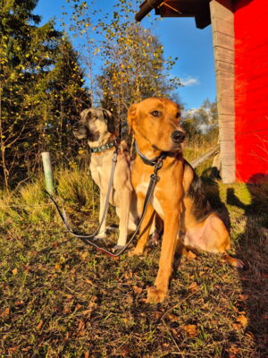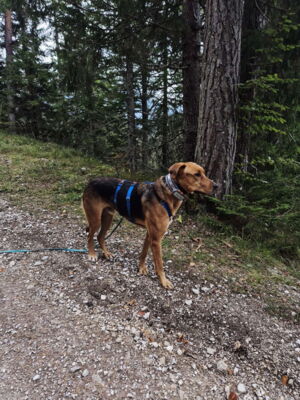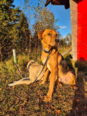 Tambo ist in seinem gewohnten Umfeld ein anhänglicher, aufgeweckter, freudiger Hund. Er bindet sich eng an seine Bezugsperson(en). Ist dieses Vertrauen einmal da, so geht er – trotz seiner immer noch vorhandenen Ängste in ungewohnten Situationen – mit dieser an der Seite durch das Feuer. Ein Adoptant/eine Adoptantin muss sich bewusst sein, dass dieser sensible Hund die ersten Wochen Zeit benötigen wird, wieder vertrauen zu fassen. Ist die Bindung einmal da, ist Tambo wie erwähnt sehr anhänglich und verschmust. Draussen gibt es immer wieder diverse Situationen, die ihn erneut verunsichern und er reagiert ängstlich (Rückzug, Schlottern). Mit seiner Bezugsperson an der Seite meistert er jedoch alle schwierigen Situationen wie bspw. Zugfahren oder in ein Geschäft. Es steckt noch viel Potenzial in ihm und er macht immer noch wöchentlich Fortschritte, die es weiter zu fördern gilt. In seinem gewohnten Spazierumfeld ist er unbeschwert, fröhlich und kann frei laufen. Ein souveräner Ersthund, wie auf der Pflegestelle, hilft Tambo, ist jedoch kein Muss. Andere Hunde interessieren ihn auf dem Spaziergang nicht. Bekannte Hundefreunde begrüsst er fröhlich und unkompliziert. Die Katzen auf der Pflegestelle schmusen an ihm, was er mittlerweile gerne annimmt. Katzen draussen sind auch kein Problem, jedoch sind Rehe und Füchse für ihn durchaus interessant und der Jagdtrieb muss im Auge behalten werden. Dieser zeigt sich jedoch nur in seinem gewohnten Spazierumfeld, wo er fröhlich und unbeschwert ist. An nicht bekannten Orten läuft er an der Leine mit und orientiert sich an seiner Bezugsperson, ohne jedoch die sonstige Freude und Unbeschwertheit zu zeigen. Das braucht sicherlich noch weitere Zeit. An der Leine läuft er perfekt. Auch in Angstsituationen wurde ihm das Zerren an der Leine mittlerweile abgewohnt und er lässt sich durch klare Anweisung und sichere Führung beruhigen, ohne in den Fluchtmodus zu wechseln.