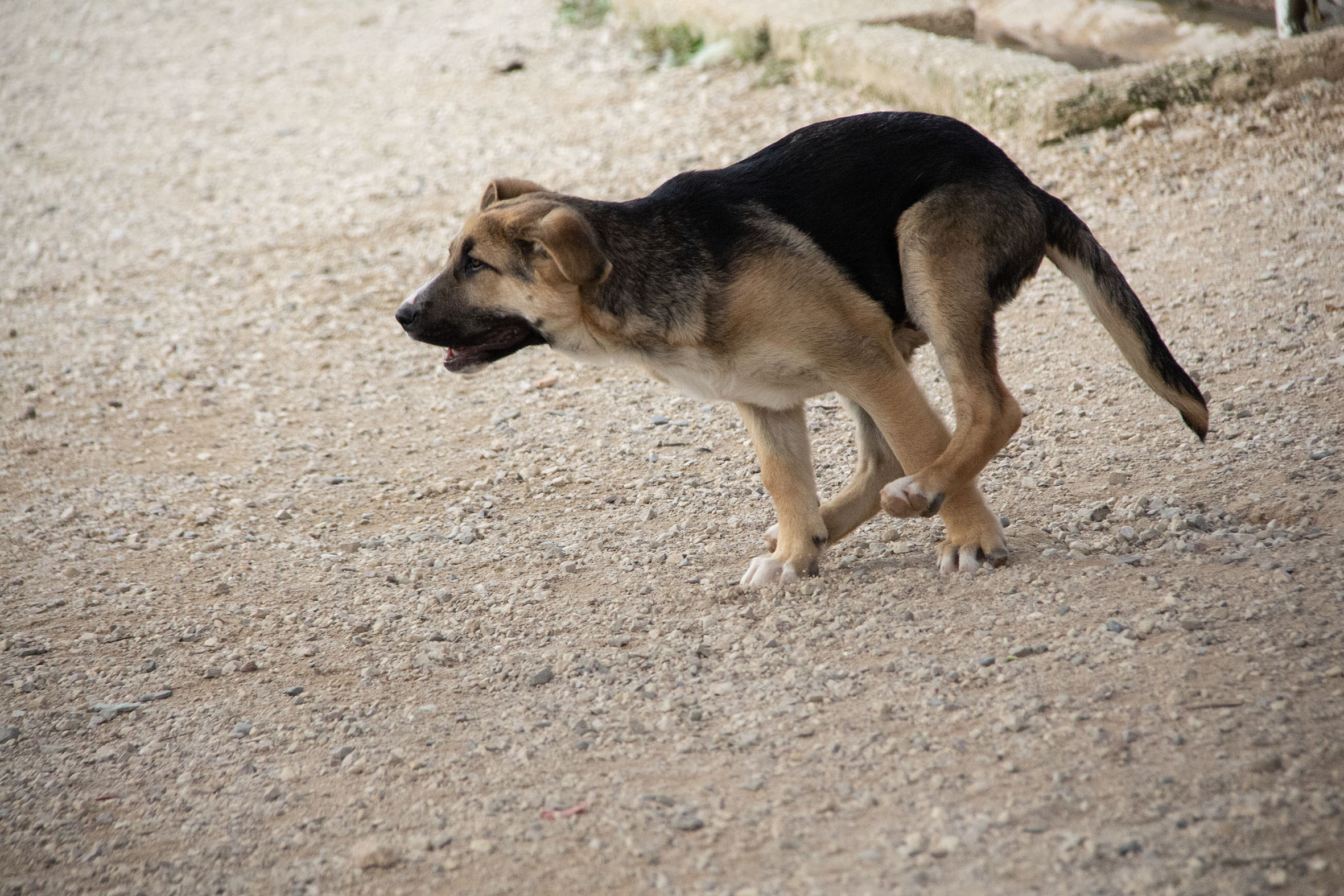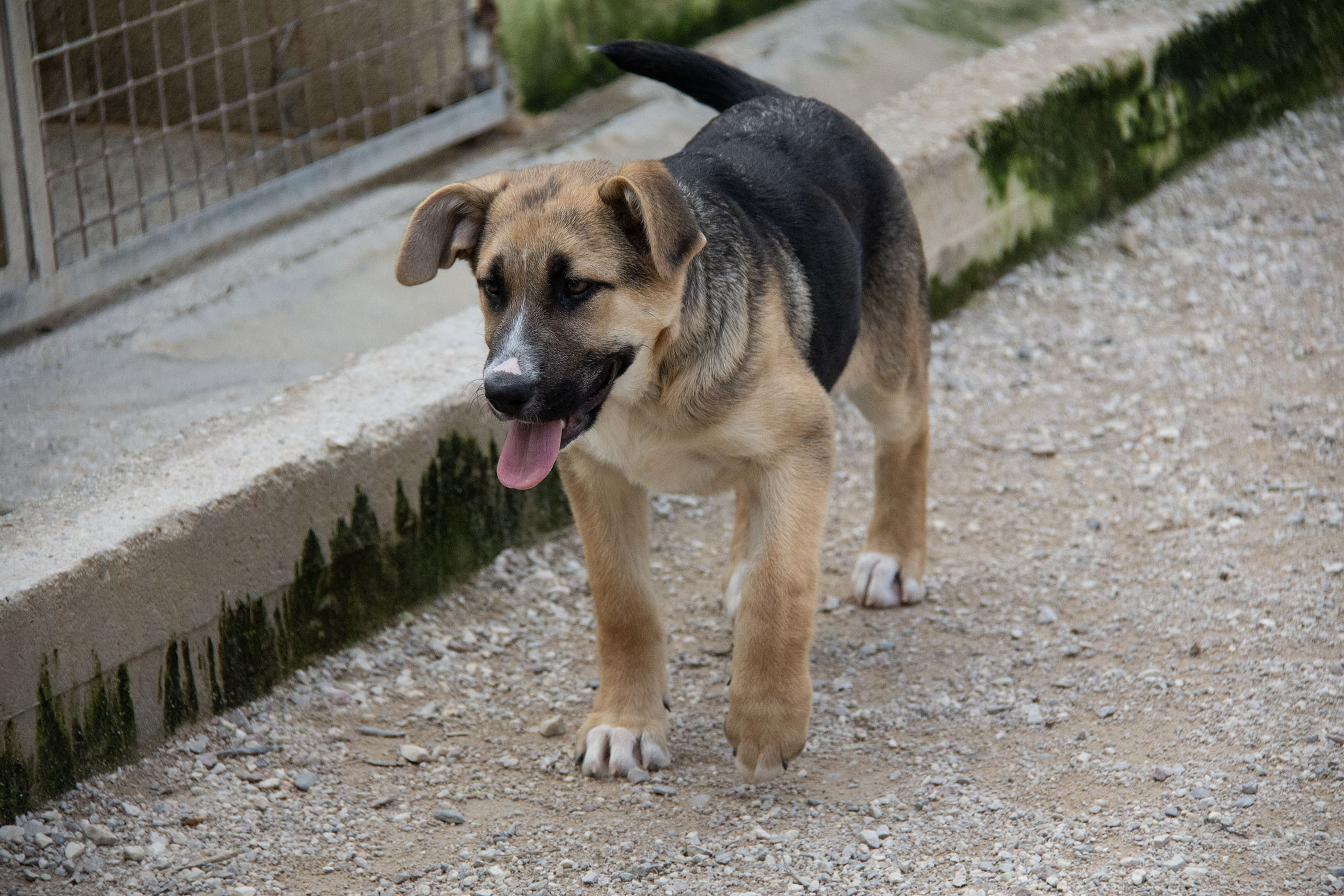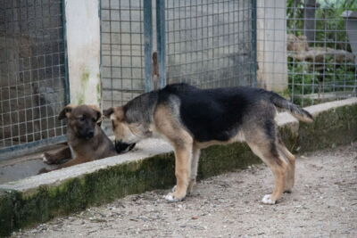 In Melampo hat Tria Kontakt zu vielen anderen Hunden und darf ihren täglichen Freigang auf dem weitläufigen Gelände von Melampo geniessen. Wenn sie die Möglichkeit dazu hat, so spielt Tria am liebsten mit den anderen Hunden.