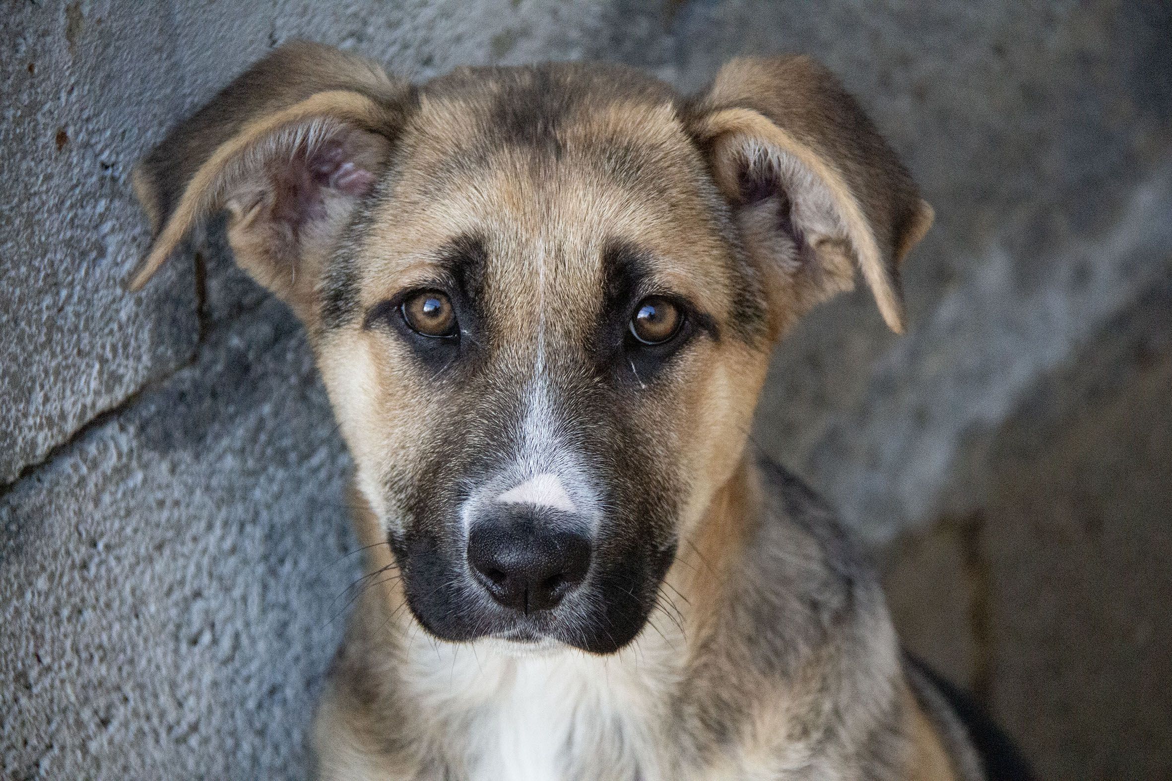 Tria wurde unter einem Auto entdeckt. Sie lag dort ganz alleine, von einem möglichen Besitzer weit und breit keine Spur. Sie war zu diesem Zeitpunkt noch nicht einmal drei Monate alt.