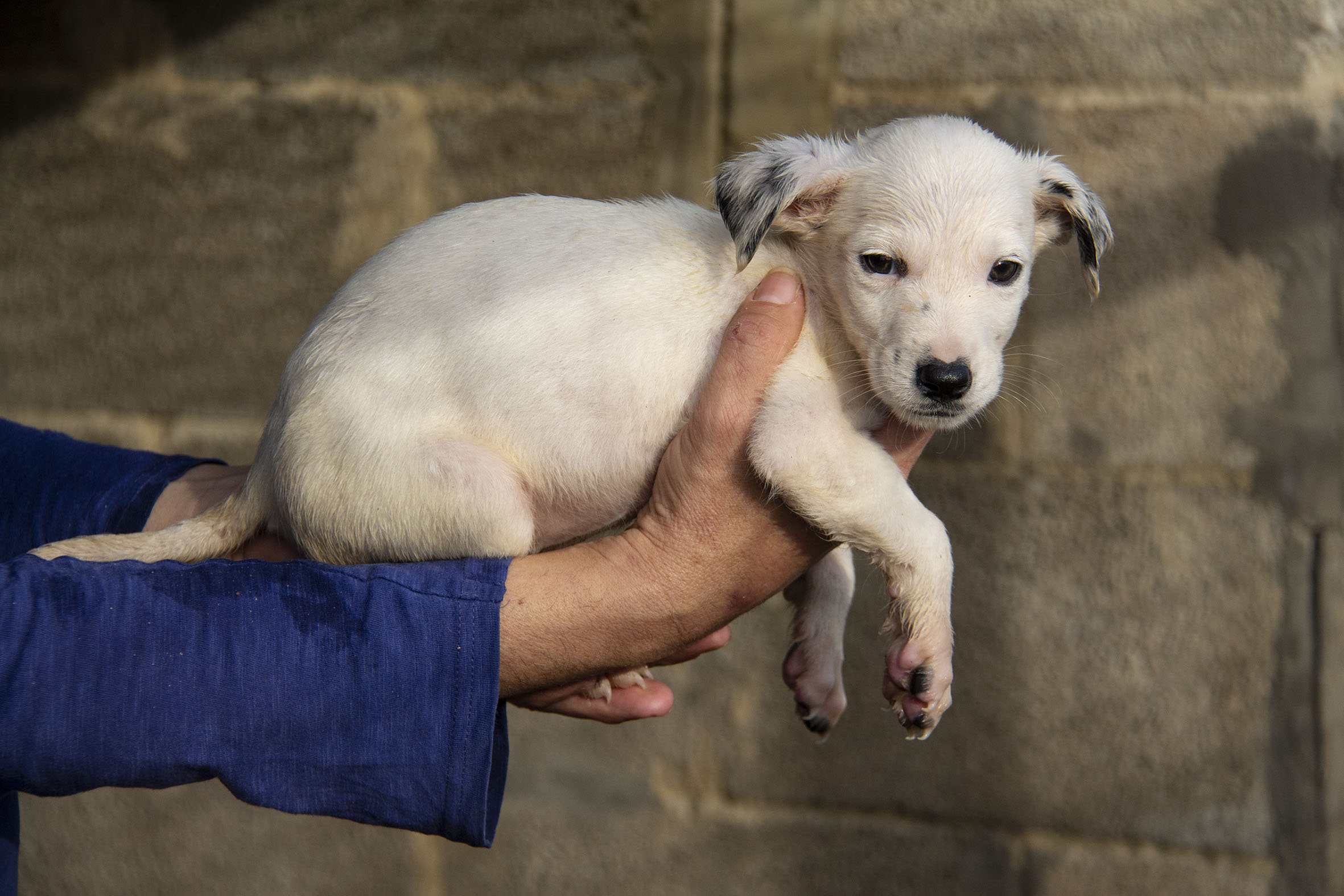 Die Mutterhündin Paloma wurde Rande einer Landstrasse gefunden. Ein Besitzer war weit und breit nicht in Sicht. Zum Glück konnten Helfer sie aus dieser gefährlichen Situation retten. Paloma war zu diesem Zeitpunkt auch noch hochträchtig. Paloma hatte zwar einen Chip und der Besitzer konnte auch kontaktiert werden. Er hatte allerdings kein Interesse daran die Hündin zurückzunehmen (zu Palomas Glück).