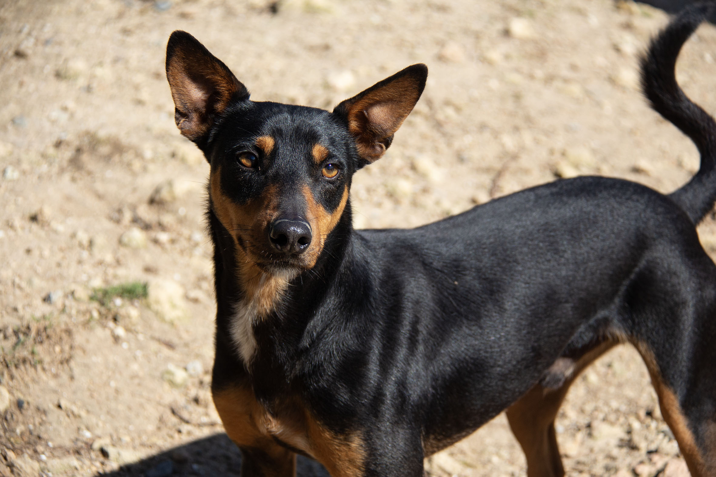 Mit ihrem Alter von vier Monaten handelte es sich wahrscheinlich um einen ungewollten Wurf. Da es wohl keine reinrassigen Podencos sind, taugten sie den Jägern wohl nicht zur Jagd. Zu ihrem Glück befinden sie sich nun in Melampo an einem sicheren Ort und sie haben die Chance auf eine glückliche Zukunft.