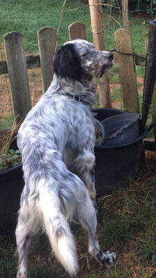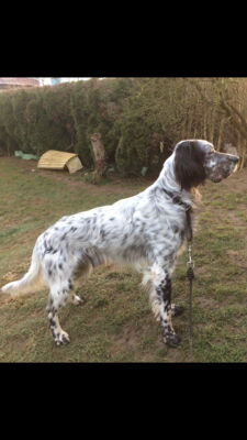 Yaco ist ein reinrassiger englischer Setter und besitzt daher ein rassebedingtes Jagdverhalten und Interessenten sollten sich unbedingt im Vorfeld über diese Rasse informieren.
