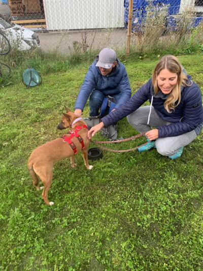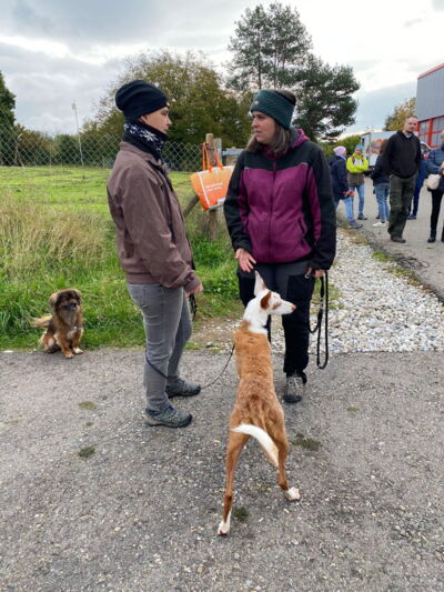 Eine Fellnase nach der andern wurde ausgeladen, und jede einzelne wurde von den neuen Besitzern wärmstens empfangen. Und wie immer dauerte es bei einigen Fellnasen etwas länger, bis sie (in der komplett neuen Umgebung!) auftauten. Bei anderen wiederum sagte nach dem Aussteigen die Körpersprache: interessant hier, was wollen wir als Nächstes unternehmen? Und wie sich dann gegen Ende sogar noch einige Sonnenstrahlen zeigten, können wir - einmal mehr - von einer