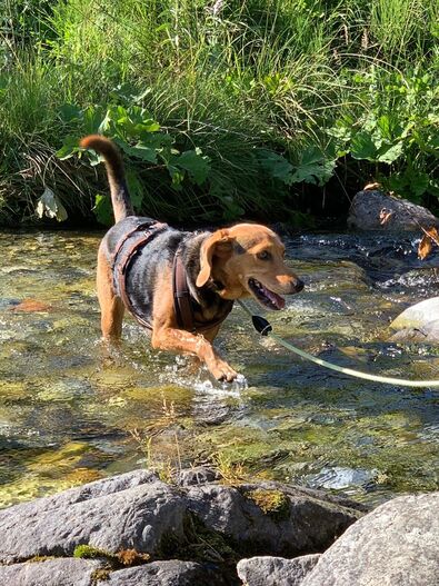 Dieser Weg war nicht ganz einfach, denn der intensive Jagdinstinkt von Gina hat uns mächtig auf Trab gehalten! Wir sind viele verschiedene Wege gegangen bis uns dann einer über Ulli Reichmann, die Autorin des Buches „Wege zur Freundschaft - eine Liebeserklärung an jagende Hunde“, zu Marlen Brandenberg geführt hat. Marlen war die erste Hundetrainerin, welche den gesamten Alltag von Gina mit uns zusammen angeschaut hat und nicht nur das „Jagdproblem“. Sie hat uns aufgezeigt, wie wir Teil vom Jagdspaziergang werden können, statt die Spassbremse am Ende der Leine zu sein! Und wie wichtig die Ruhephasen für Gina sind, v.a. nach intensiven Spaziergängen.