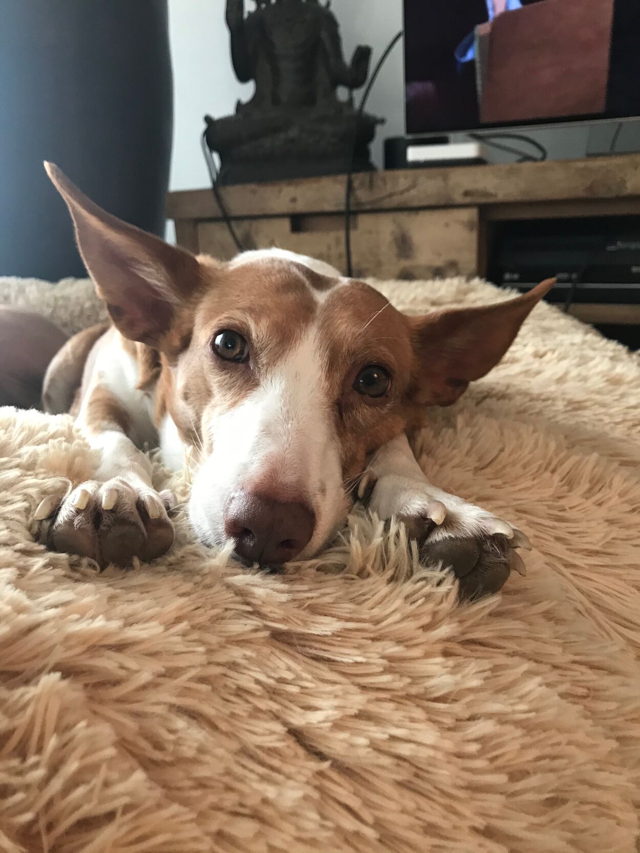Da unsere Familie schon aus 2 Menschen plus einer Viszla- und eine Podenca Hündin bestand, sollte PADMA als Pflegehund zu uns kommen und bei uns wohnen bis sie ihre Familie findet. Bei unserer Podenca hatten wir ganz klar als Pflegestelle versagt- das sollte nicht nochmals passieren.