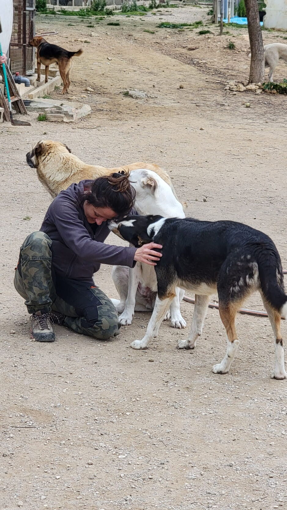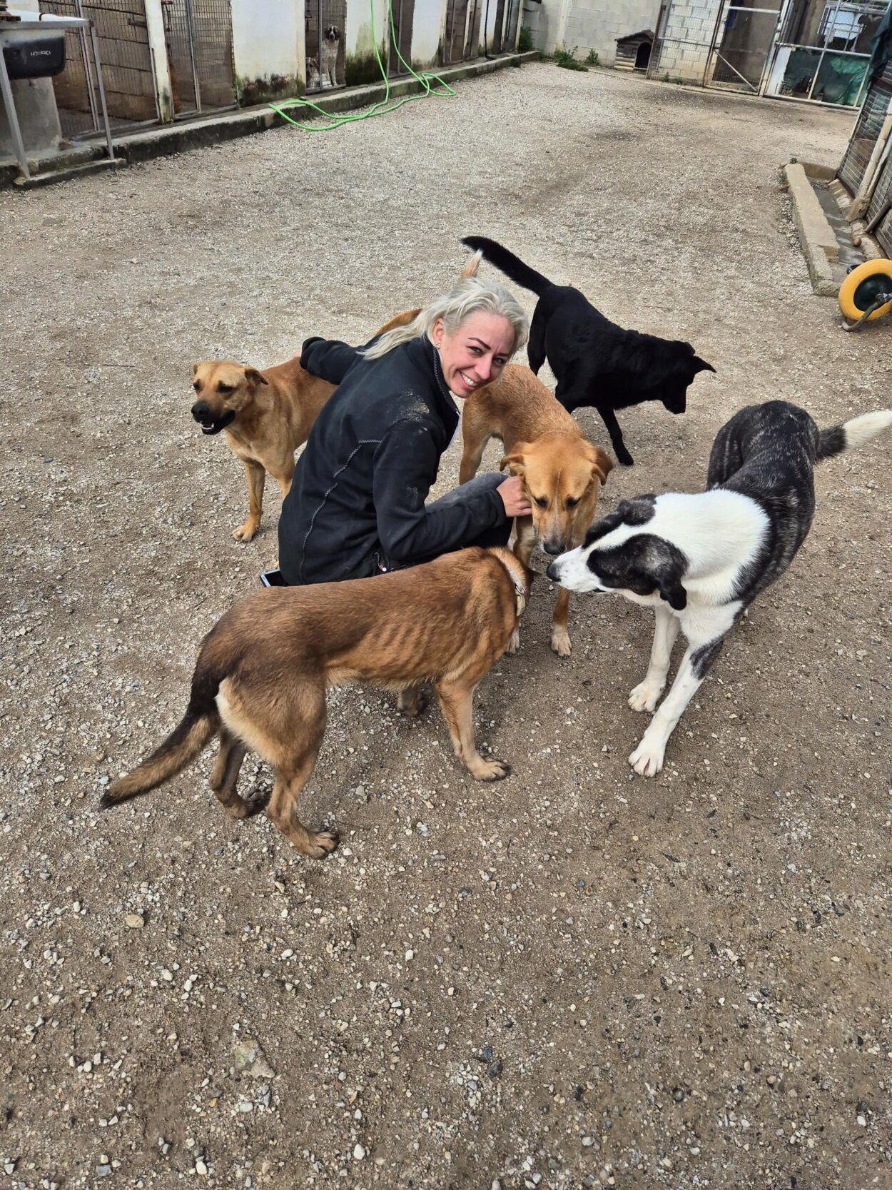 Vereinzelt wurden Hunde durch Menschen so schlimm behandelt, dass ihre Seelen trotz der Melampoliebe noch nicht geheilt sind und das vielleicht in dem Rahmen auch nie mehr können. Gerade diese armen, traurigen und ängstlicheren Seelen bräuchten dringend einen geschützten Rahmen, in dem nur sie mit IHREM Menschen zur Ruhe kommen und heilen können. Mir persönlich ist das sehr nahe gegangen – trotz dem fröhlichen, der eher unbeschwerten Hunde, hat mich die teilweise tiefe Sehnsucht der Hunde nach Liebe und IHREM Menschen sehr mitgenommen. Auf den ersten Blick könnte man denken, dass die Hunde ja hier eigentlich nichts mehr bräuchten, als sie haben; schöne Ausläufe, saubere Zwinger, gute Ernährung, eine gute medizinische Versorgung durch JJ (Juan Jesus – der Tierarzt😊!), Hundegesellschaft, Spielen und Rennen im Auslauf, aber (die meisten) Hunde brauchen auch Bindung zu einem Menschen, Familienanschluss, ein warmes Bett in einer ruhigen Umgebung, Sicherheit und Vertrautheit. Letztere Punkte sind auch in Melampo erfüllt, jedoch merkt man wirklich bei den meisten Hunden, dass sie auf IHREN Menschen warten und sich die Zuneigung von José und Co. einfach in Ministückchen teilen müssen. Die Blicke, die ich am Schluss ertragen musste, als ich mich verabschiedet habe, nachdem sie uns fast alle mit so viel Liebe überschüttet haben und wir sie nun doch zurücklassen mussten, haben mein Herz zerrissen. Auch jetzt während ich das schreibe und meine eigene wunderbare Hündin aus Bulgarien und meine adoptieren Katzen bei mir liegen, kommen mir die Tränen.