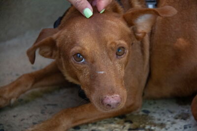 Beacon lebte auf der Straße, als er entdeckt wurde und hatte große Angst vor Menschen und auch vor anderen Hunden. Er wurde längere Zeit gefüttert, bis er gerettet werden konnte. Nun ist Beacon in Melampo untergebracht und in Sicherheit.