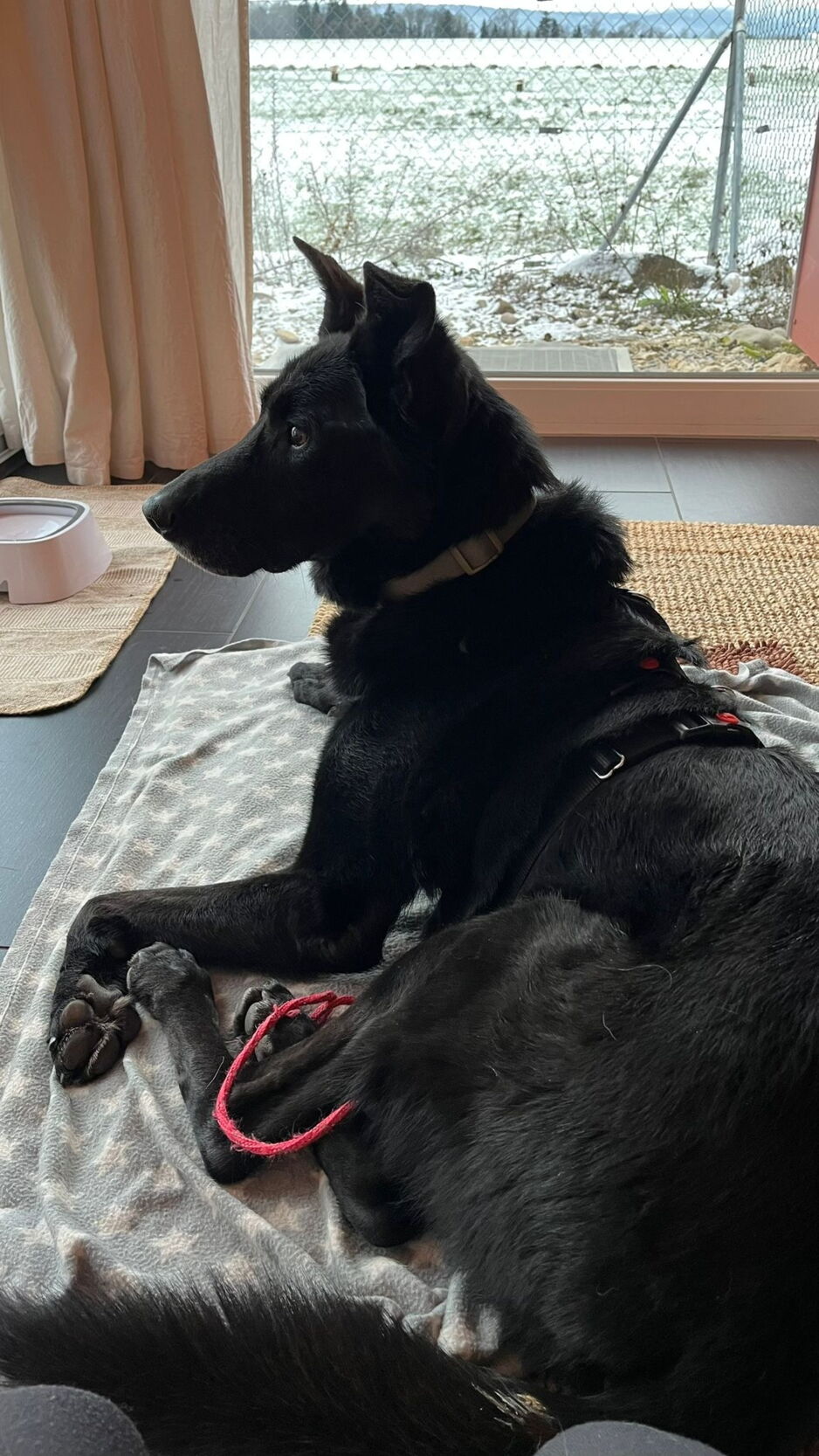 Brais ist extrem intelligent und lernt mit beeindruckender Geschwindigkeit. Wir vermuten, dass sein starkes Fixieren von Licht auch mit einer früheren Unterbeschäftigung zusammenhängen könnte (Tests in Spanien haben ergeben, dass kein medizinisches Problem vorliegt). Deshalb haben wir bereits ab dem zweiten Tag begonnen, ihn gezielt geistig auszulasten. Signale wie Decke, Sitz, Platz und Warten hat er schnell verstanden und setzt sie mit sichtbarer Freude um. Er hat auch schon gut gelernt, auf der Decke zu bleiben, wenn rund um ihn spannende Dinge passieren (z.B., wenn Läckerli rumfliegen). Das Hunde-ABC bauen wir nun Schritt für Schritt weiter aus.