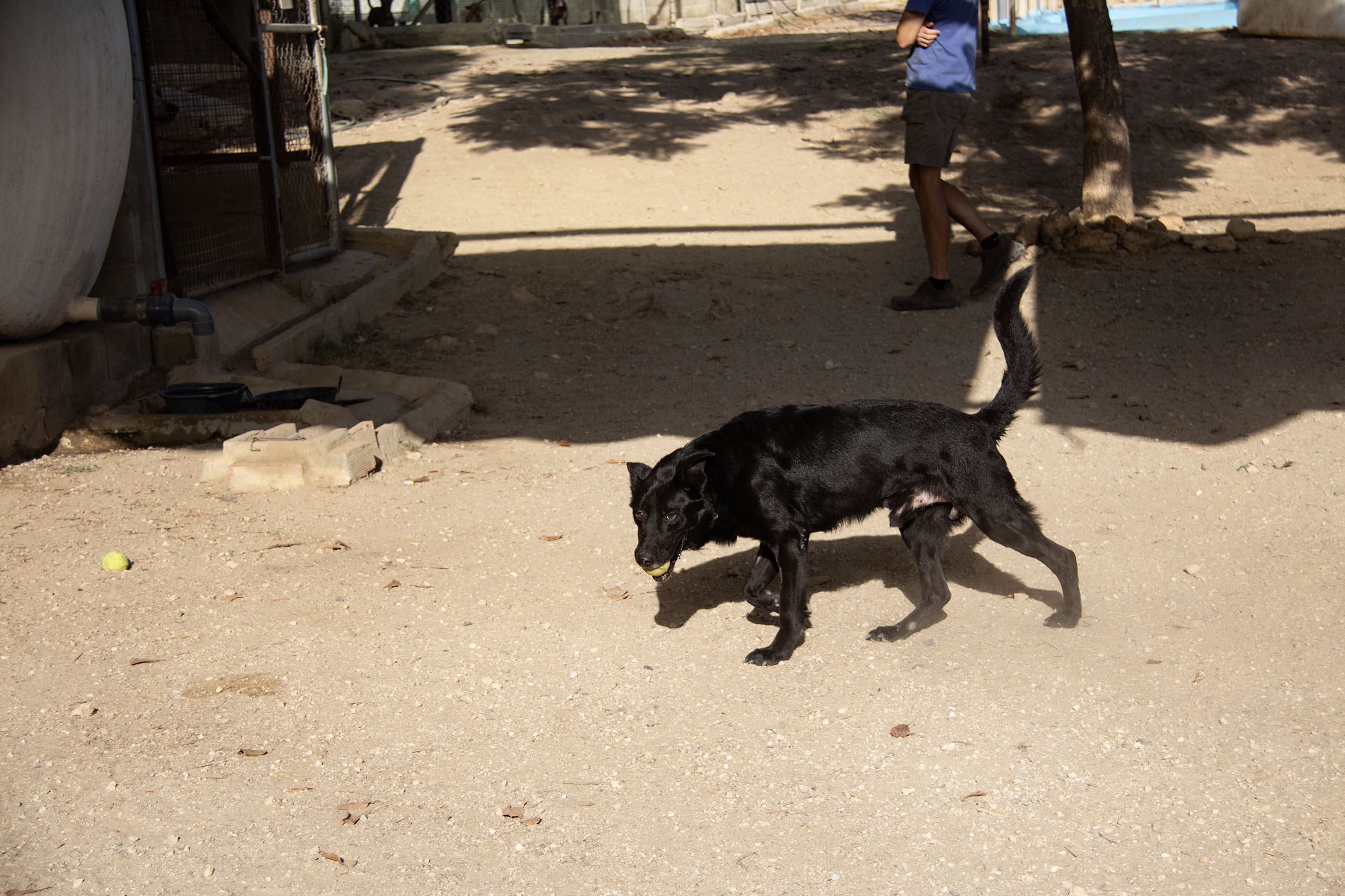 Mit den freiwilligen Helfern zeigt er sich sehr anhänglich und gehorsam, er mag ihre Aufmerksamkeit und das Spielen mit dem Ball.