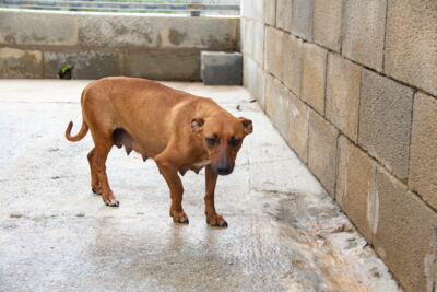 Als sich einige freiwillige Helfer von Melampo nach ihrem Dienst bei den Hunden auf den Heimweg machten, entdeckten sie in der Nähe des Tierheimes die süsse Breca. Sie schlief am Rand einer Strasse im Strassengraben. In dieser Nacht regnete es zudem noch stark: was für ein trauriger Anblick!