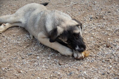 4 Welpen wurden über das Eingangstor von Melampo geworfen. Es handelt sich wohl um einen unerwünschten Wurf, weil ihre Mutter nicht sterilisiert wurde. Zum Glück sind sie in Melampo gelandet und nicht auf der Strasse..