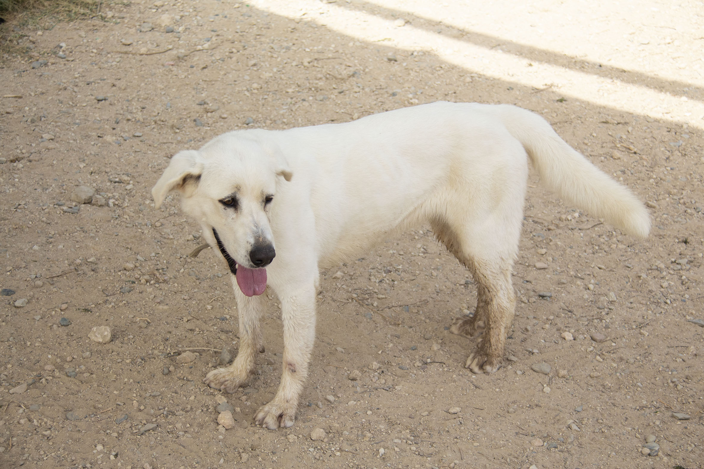 Frau hat Dakota gefunden aber konnte sich selbst nicht um sie kümmern. Deshalb hat sie Dakota ins Melampo gebracht. Es konnten keine Besitzer ausfindig gemacht werden.