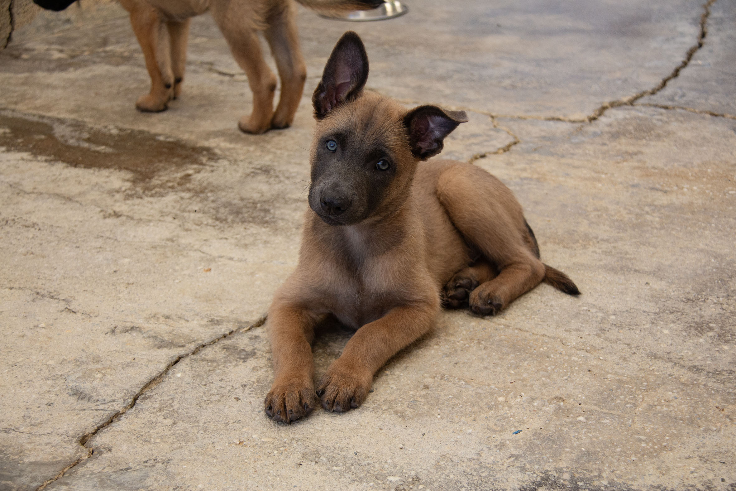 Bei den Welpen handelt es sich um Malinois-Mixe. Der Vater ist uns unbekannt. Darum ist eine genaue Endgrösse schwierig zu schätzen. Sie werden aber sicher noch deutlich wachsen und an Gewicht zulegen. Momentan sind sie noch zu jung für eine Kastaration/Sterilisation. Dies muss in der Schweiz nachgeholt werden, sobald der richtige Zeitpunkt dafür gekommen ist.