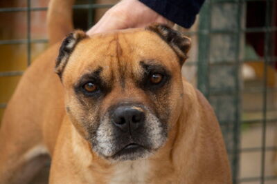 Unser lieber Ferdinand (der Stier) ist ein Bait Dog ein sogenannter Köderhund. Der dazu missbraucht wurde, um Hunde für Hundekämpfe scharf zu machen. Ihm Wurden beide Ohren ganz kurz abgeschnitten so wie sein Schwanz kupiert.
