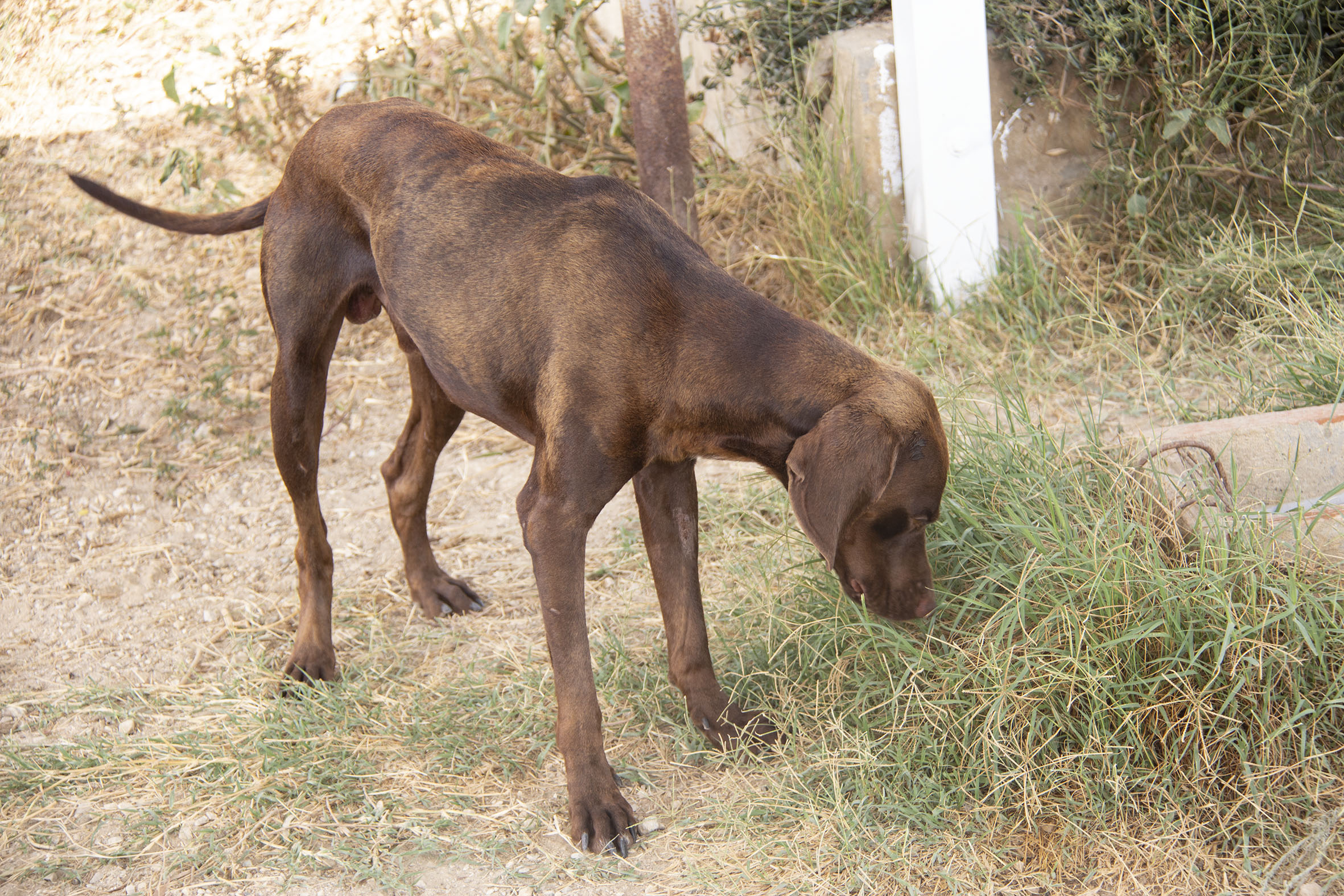 Flint wurde zusammen mit Frisco von der Polizei aus ganz schlechter Haltung geholt und die beiden haben Zuflucht im Melampo erhalten. Beide Hunde wurden vom alten Besitzer die ganze Zeit an einer Kette gehalten.