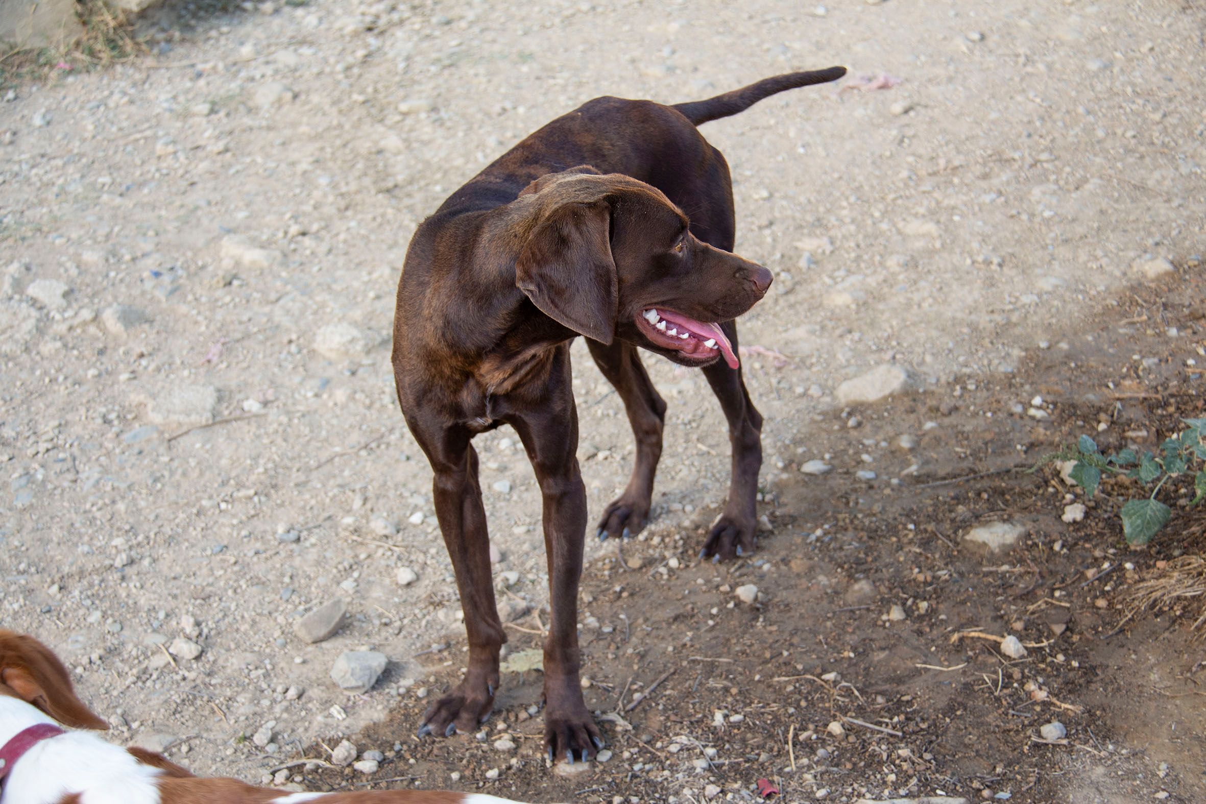 Zu den Helfern im Melampo ist Flint sehr lieb, teilweise etwas übermütig und gehorsam. Die Zuwendung der Helfer machen ihn froh und glücklich. Flint konnte bereits am ersten Tag in den Auslauf mit den anderen Hunden integriert werden. Er versteht sich bestens mit den anderen Hunden und Hündinnen. Es freut uns, dass die Mittelmeerkrankheiten alle negativ getestet wurden.