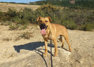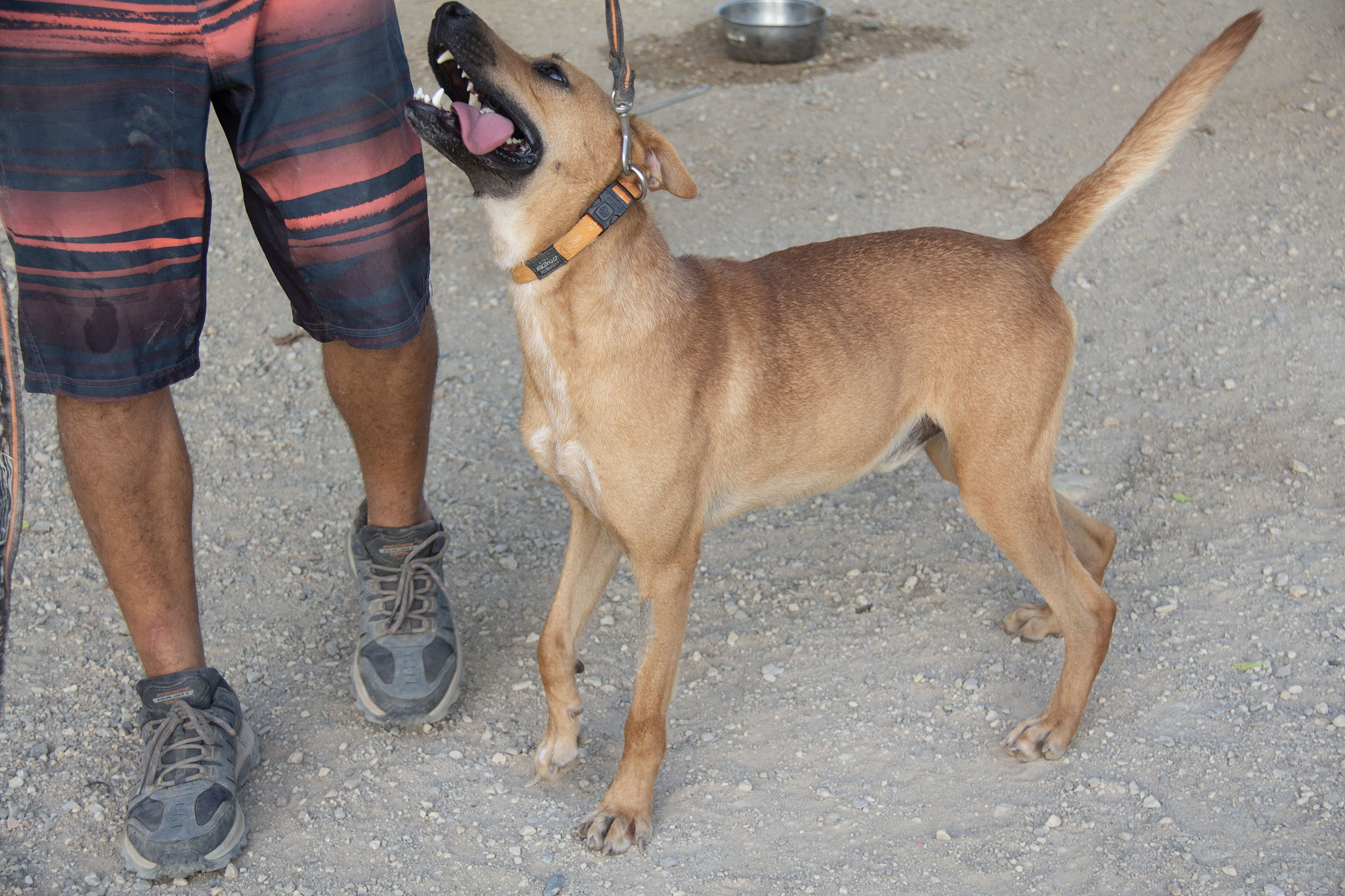 Im Kontakt zu anderen Hunden ist vor allem Fuji eher schüchtern und hält etwas Abstand zu den anderen Hunden. Vielleicht hatten sie in ihrer Vergangenheit nur wenig Kontakt zu anderen Hunden und sind es sich einfach noch nicht gewohnt. Da die Hunde in Melampo aber täglich Kontakt zu anderen Hunden haben und Freilauf in der grossen Hundegruppe geniessen, werden sie sich wohl bald sozialisieren und sicherer werden.