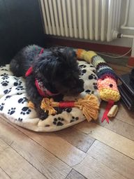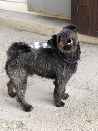 Goiko war einst bestimmt ein wunderschöner, süsser und Welpe mit weichem, gelocktem Fell. Aber wie jeder Welpe wurde auch er grösser und aktiver. So verlor seine Familie wohl ihr Interesse an ihm, er bekam weniger Zuwendung und sein einst so weiches Fell wurde nicht mehr gepflegt und verknotete nach und nach. Zum Schluss wurde Goiko dann entsorgt, indem er am Eingangstor von Melampo angebunden wurde: alleine, verängstigt, dünn und in sehr schlechtem Zustand.