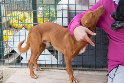 Für den noch etwas unsicheren Kakú wünschen wir uns Menschen, die gerne ihr Leben mit einem verschmusten Podenco teilen und ihm geduldig alles Notwendige beibringen möchten.