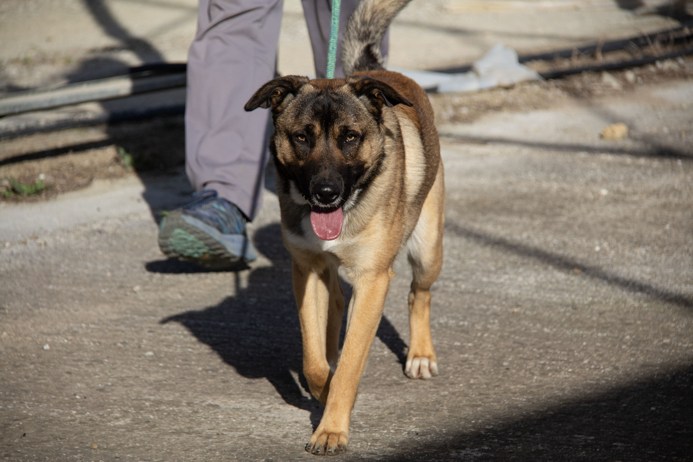 Zurück im Melampo-Camp zeigt sich Kamiel bisher gut im Verhalten – auch im Umgang mit seinen Artgenossen. Wir haben festgestellt, dass er ein toller Hund ist: aktiv, energiegeladen, verspielt – und er liebt es, im Wasser zu planschen. Er spielt und interagiert gerne mit anderen Hunden. Auch Spielzeug mag er sehr. Kommt jedoch zu viel Spannung, Rivalität oder Aufregung ins Spiel, kann es vorkommen, dass er wütend reagiert – auch wenn das nicht die Regel ist. Im Alltag rennt und spielt er täglich mit anderen Hunden und Spielzeug – in der Regel völlig unproblematisch. Nur in einzelnen Momenten kann es nötig sein, ihn zu korrigieren.
