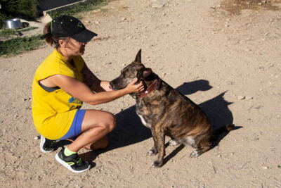Wir denken, dass sie in ihrem bisherigen Leben wenig Kontakt zu anderen Hunden gehabt hat. Aktuell erleben wir sie im Umgang mit anderen Hunden als eher dominant. Wir müssen ihr Zeit geben, sich mit den anderen Hunden zu sozialisieren. Für den Moment denken wir, dass sie in einem Haushalt als Einzelhund besser aufgehoben wäre.
