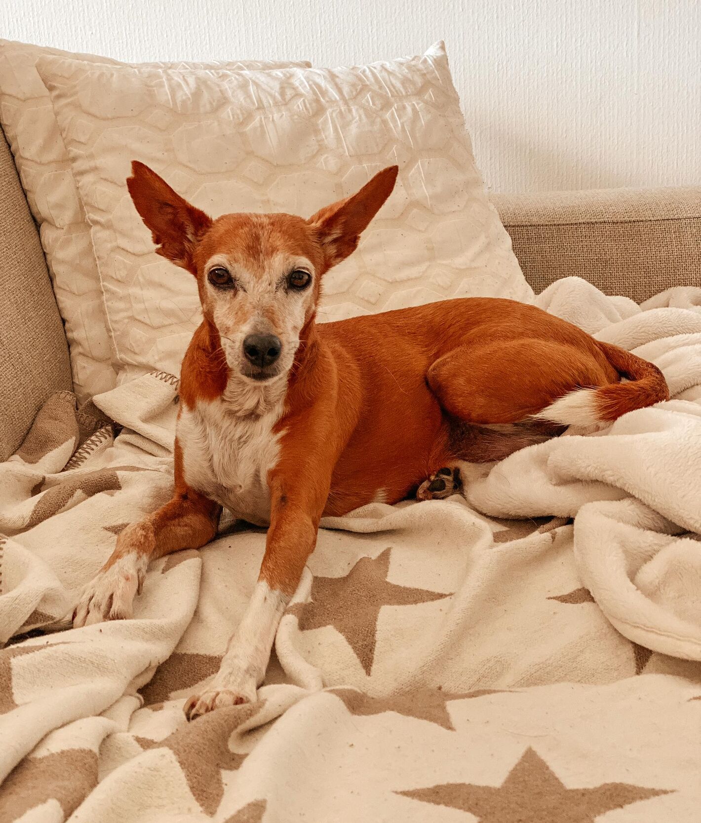 Linda lebte mit ihren drei Kindern (Lindo, Mimbra und Meiga) auf der Terrasse eines typisch andalusischen Hauses. Die Hunde lebten für eine lange Zeit völlig isoliert auf dieser Terrasse, ohne dass sie spazieren geführt wurden oder einmal auf die Strasse kamen. Ihr ehemaliger Besitzer war an Alzheimer erkrankt und konnte sich entsprechend nicht mehr richtig um die Hunde kümmern. Zum Glück konnte die Hundefamilie von Melampo aufgenommen werden.