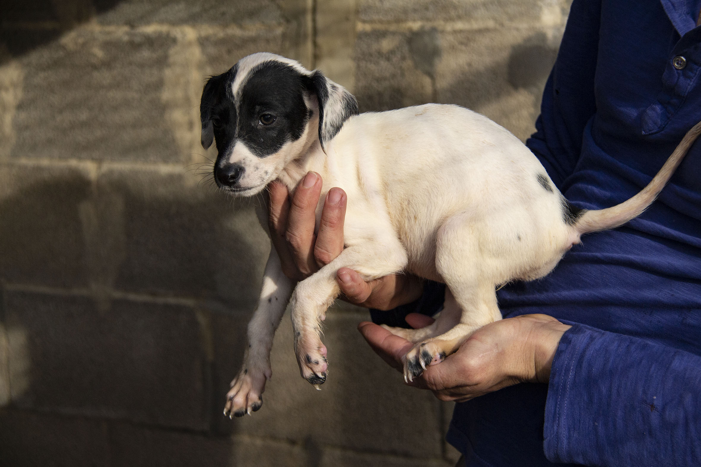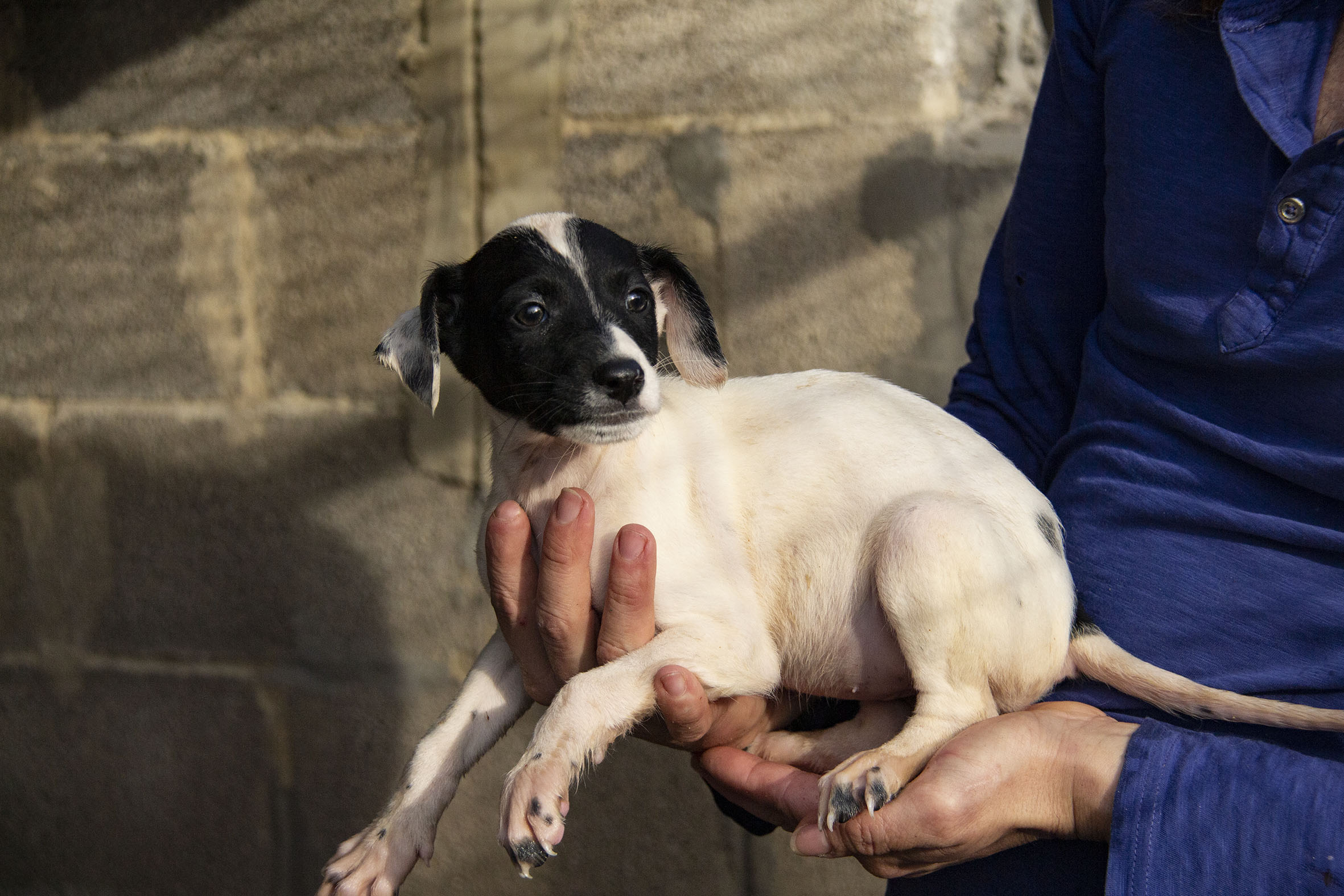 Die Mutterhündin Paloma wurde Rande einer Landstrasse gefunden. Ein Besitzer war weit und breit nicht in Sicht. Zum Glück konnten Helfer sie aus dieser gefährlichen Situation retten. Paloma war zu diesem Zeitpunkt auch noch hochträchtig. Paloma hatte zwar einen Chip und der Besitzer konnte auch kontaktiert werden. Er hatte allerdings kein Interesse daran die Hündin zurückzunehmen (zu Palomas Glück).