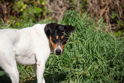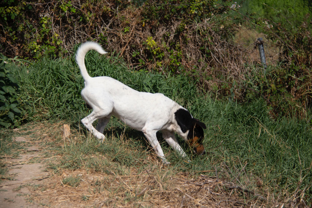 Parche hat Narben, vor allem seelische, aber er ist eine Frohnatur und sieht das Glas stets halb voll. Er gibt sich so unglaublich viel Mühe, er läuft sehr schön an der Leine, ist meistens gut abrufbar, er ist begeisterungsfähig und lernt gerne und schnell.