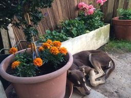 Ausgedehnte Spaziergänge, Herumrennen und Nasenarbeit bereiten ihr besonders viel Freude. Sie ist ein typischer Podenco und jagt draussen.