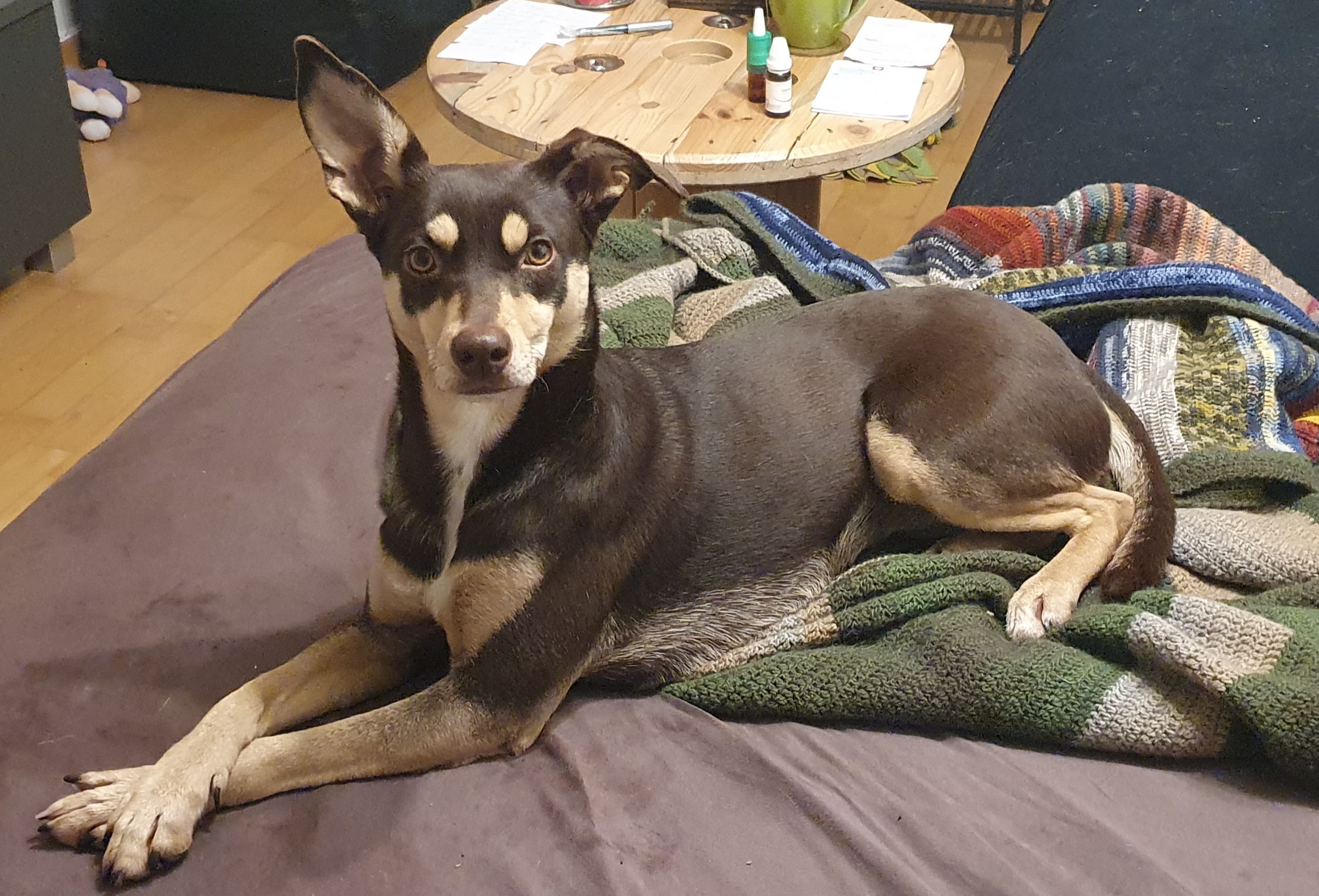 Das alleine bleiben ist ihr grösstes Thema, das ihr sehr schwerfällt und in ganz kleinen Schritten weiter aufgebaut werden muss. Auch die Gesellschaft anderer Hunde, die alleine sein können, konnten ihr bisher keine Sicherheit geben.