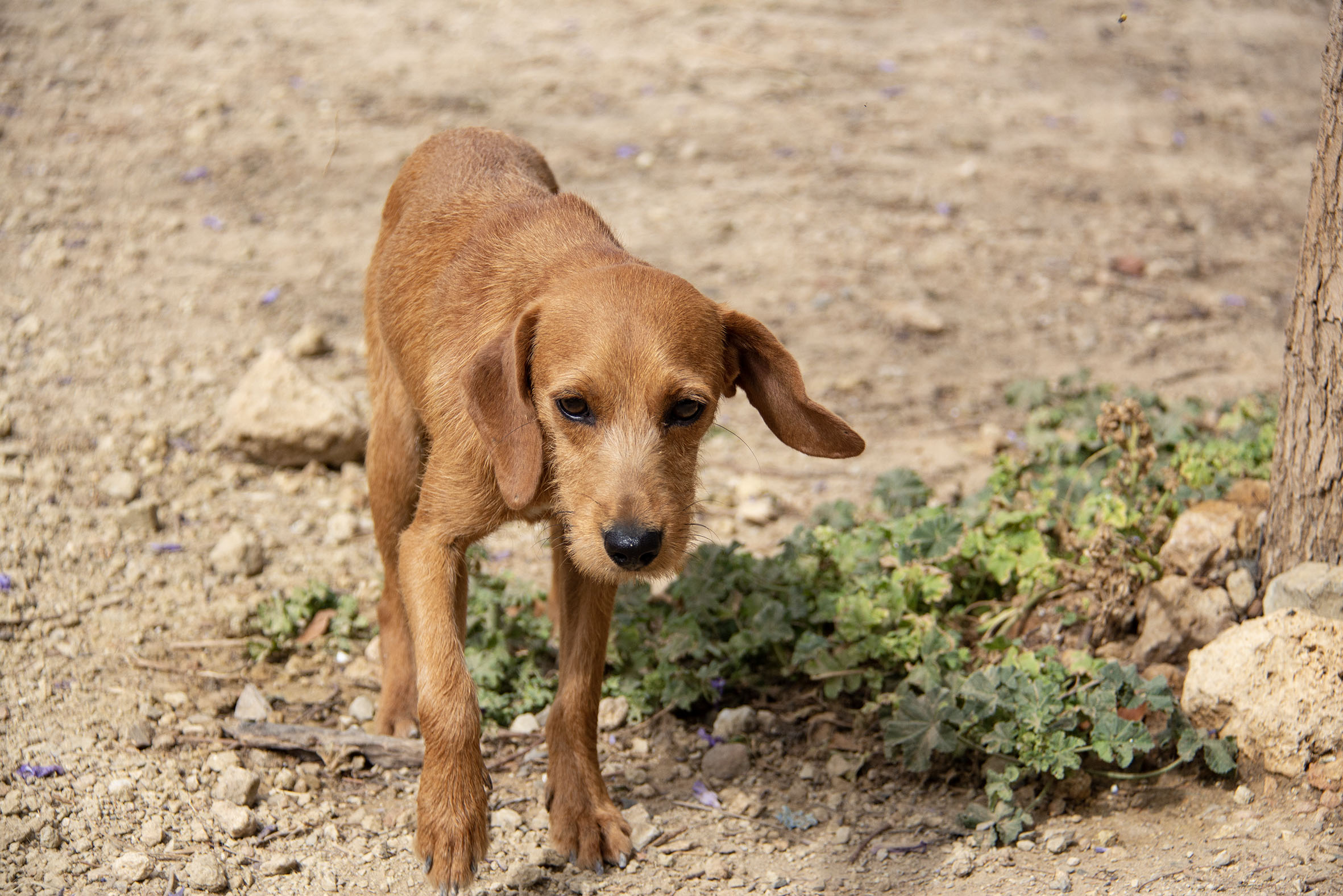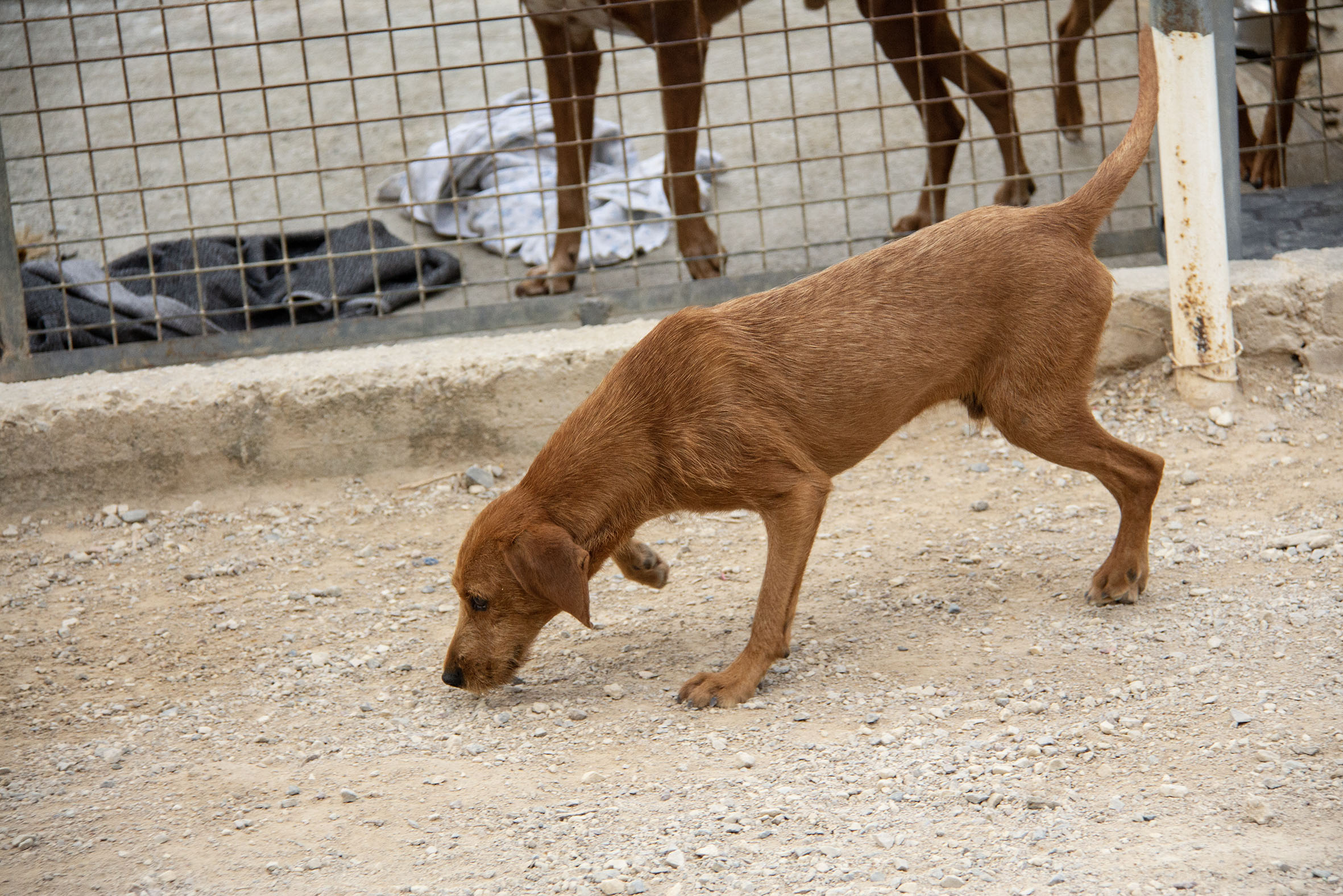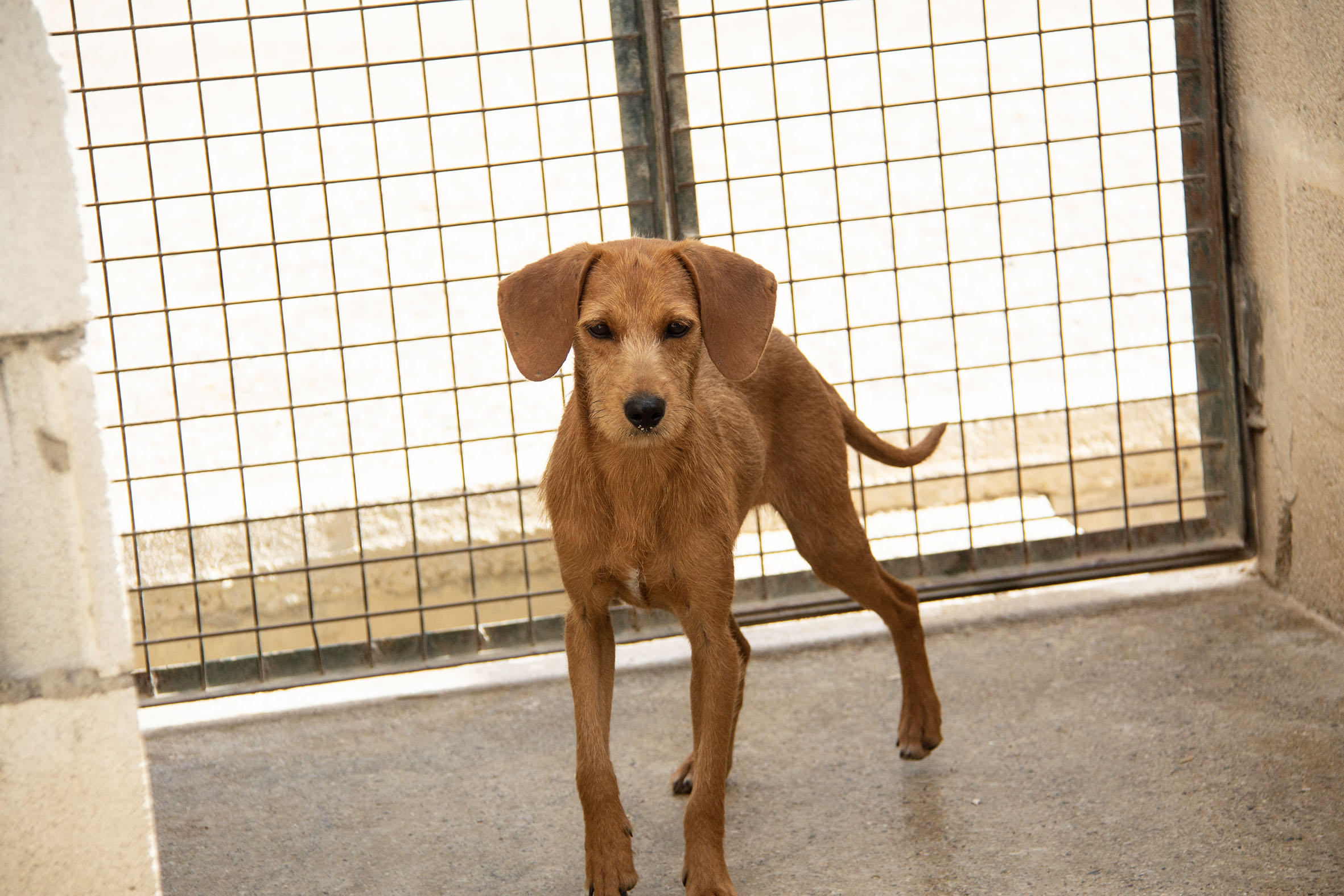 Rado wurde zusammen mit weiteren Hunden (Candela, Ceniza, Ascua, Olmo und Gordo) von einem trostlosen Ort gerettet, wo sie eingesperrt, ohne Wasser und Futter und inmitten ihrer eigenen Hinterlassenschaften leben mussten. Rados und Olmos Zustand waren erschreckend (wir haben einige Fotos beigefügt). Er war so dünn und dehydriert, dass es lebensgefährlich war. Im Melampo geht es ihm schon viel besser und er macht grosse Fortschritte. Die Mittelmeerkrankheiten wurden vom Tierarzt zum Glück negativ getestet.