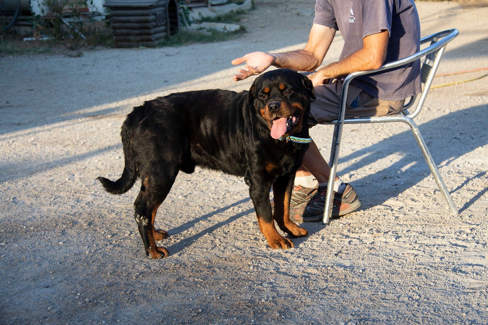 Rover ist im Umgang mit den Helfern sehr liebevoll. Er liebt die Aufmerksamkeit der Helfer und lässt sich gerne streicheln. Nach einiger Zeit in Melampo wurde der schöne Rover in Spanien adoptiert. Er hat dort zusammen mit anderen Hündinnen und Rüden gelebt. Mit diesen Hunden verstand er sich gut. Doch die Familie besass bereits einen weiteren Rottweiler. Es handelte sich um einen eher dominanten Rüden. Mit diesem Hund kam Rover leider nicht klar. Die Familie entschied, dass sie Rover nicht dauerhaft behalten können. Und darum wartet er nun wieder auf seine zweite Chance auf ein liebevolles Zuhause..