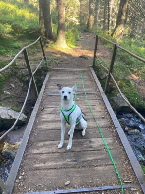 Sein Gehorsam ist erstaunlich gut, für das, dass wir zusammen nie trainiert haben. Die Befehle «warte, chehrä, hier, fuss usw.» funktionieren 1A und er ist weitgehend ohne Leine unterwegs. Sobald wir andere Personen, Jogger oder Velos gesehen haben und auch kreuzten, musste er einfach bei fuss laufen, meist auch für einen kurzen Moment an der Leine, einfach zur Sicherheit und er macht grundsätzlich keine Anstalten die «Gegenpartei» anzukläffen o.ä., ausser, Personen, besonders Männer, mit Baseballcaps, ihnen gegenüber ist er super unsicher, zieht den Schwanz ein und bellt.