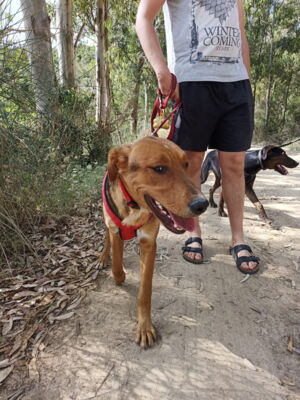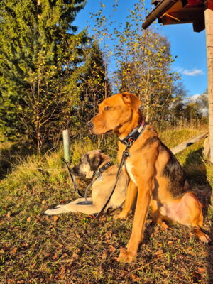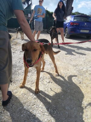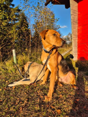 Tambo ist in seinem gewohnten Umfeld ein anhänglicher, aufgeweckter, freudiger Hund. Er bindet sich eng an seine Bezugsperson(en). Ist dieses Vertrauen einmal da, so geht er – trotz seiner immer noch vorhandenen Ängste in ungewohnten Situationen – mit dieser an der Seite durch das Feuer. Ein Adoptant/eine Adoptantin muss sich bewusst sein, dass dieser sensible Hund die ersten Wochen Zeit benötigen wird, wieder vertrauen zu fassen. Ist die Bindung einmal da, ist Tambo wie erwähnt sehr anhänglich und verschmust. Draussen gibt es immer wieder diverse Situationen, die ihn erneut verunsichern und er reagiert ängstlich (Rückzug, Schlottern). Mit seiner Bezugsperson an der Seite meistert er jedoch alle schwierigen Situationen wie bspw. Zugfahren oder in ein Geschäft. Es steckt noch viel Potenzial in ihm und er macht immer noch wöchentlich Fortschritte, die es weiter zu fördern gilt. In seinem gewohnten Spazierumfeld ist er unbeschwert, fröhlich und kann frei laufen. Ein souveräner Ersthund, wie auf der Pflegestelle, hilft Tambo, ist jedoch kein Muss. Andere Hunde interessieren ihn auf dem Spaziergang nicht. Bekannte Hundefreunde begrüsst er fröhlich und unkompliziert. Die Katzen auf der Pflegestelle schmusen an ihm, was er mittlerweile gerne annimmt. Katzen draussen sind auch kein Problem, jedoch sind Rehe und Füchse für ihn durchaus interessant und der Jagdtrieb muss im Auge behalten werden. Dieser zeigt sich jedoch nur in seinem gewohnten Spazierumfeld, wo er fröhlich und unbeschwert ist. An nicht bekannten Orten läuft er an der Leine mit und orientiert sich an seiner Bezugsperson, ohne jedoch die sonstige Freude und Unbeschwertheit zu zeigen. Das braucht sicherlich noch weitere Zeit. An der Leine läuft er perfekt. Auch in Angstsituationen wurde ihm das Zerren an der Leine mittlerweile abgewohnt und er lässt sich durch klare Anweisung und sichere Führung beruhigen, ohne in den Fluchtmodus zu wechseln.