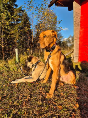 Tambo ist nun einen Monat bei uns. Er ist ein sehr lieber, aber sehr zurückhaltender und ruhiger Hund, der nach wie vor – vor allem draussen – mit seinen Ängsten zu kämpfen hat. Mit einer ruhigen, liebevollen Führung lässt er sich jedoch durch praktisch alle Situationen leiten. Im Haushalt sind Geräusche und Alltagshandlungen wie Staubsaugen, etc. kein Problem (Ausnahme Fernseher – da arbeiten wir dran). Es sind vor allem andere Menschen, die Tambo draussen ängstigen. Traktoren, Lastwagen, Autos und Pferde kreuzen sind unproblematisch. Hingegen fürchtet er sich je nach Situation vor fremden Menschen, insbesondere wenn er diese nur hört und nicht sieht. Er lässt sich aber auch dann sehr gut händeln.